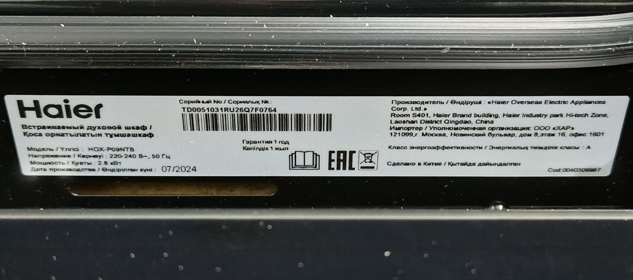 - Режимы работы духовки - верхний + нижний нагрев + конвекция, верхний нагрев + гриль, гриль, нагрев кольцевым элементом