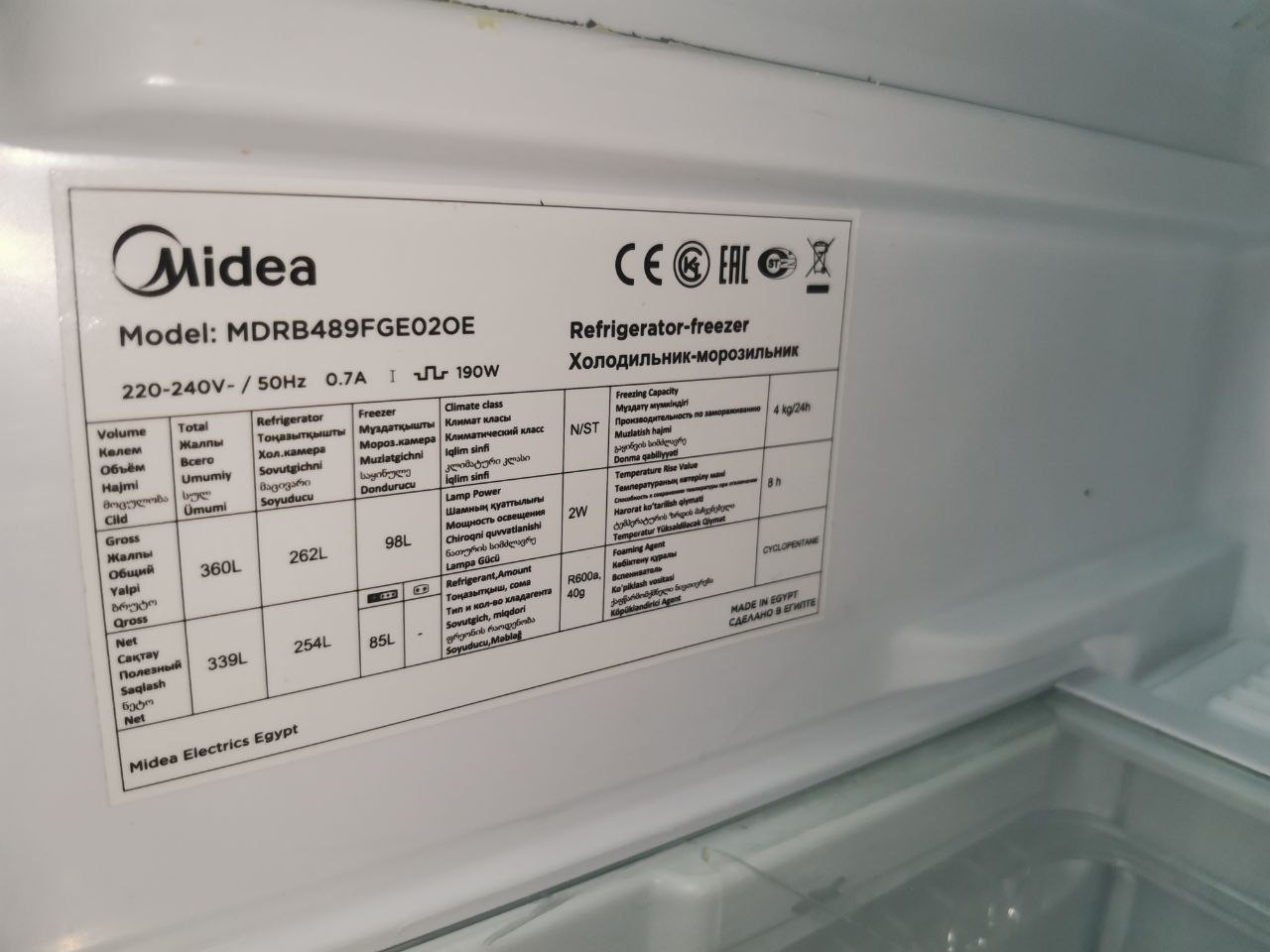 Объем холодильной камеры 254 л