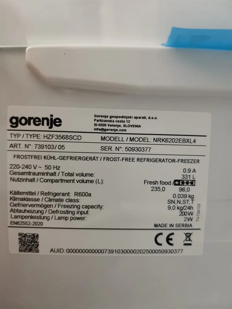 Отдельностоящий холодильник Gorenje NRK6202EBXL4