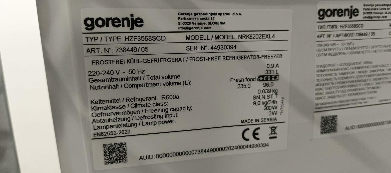 Полезный объем 235/96 л