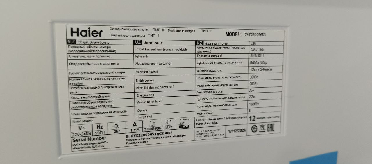 Высота х Ширина х Глубина в упаковке (см) 204.3 x 64.5 x 72.3