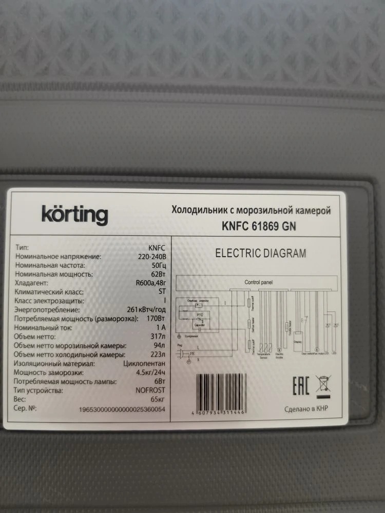 Отдельностоящий холодильник KORTING KNFC 61869 GN