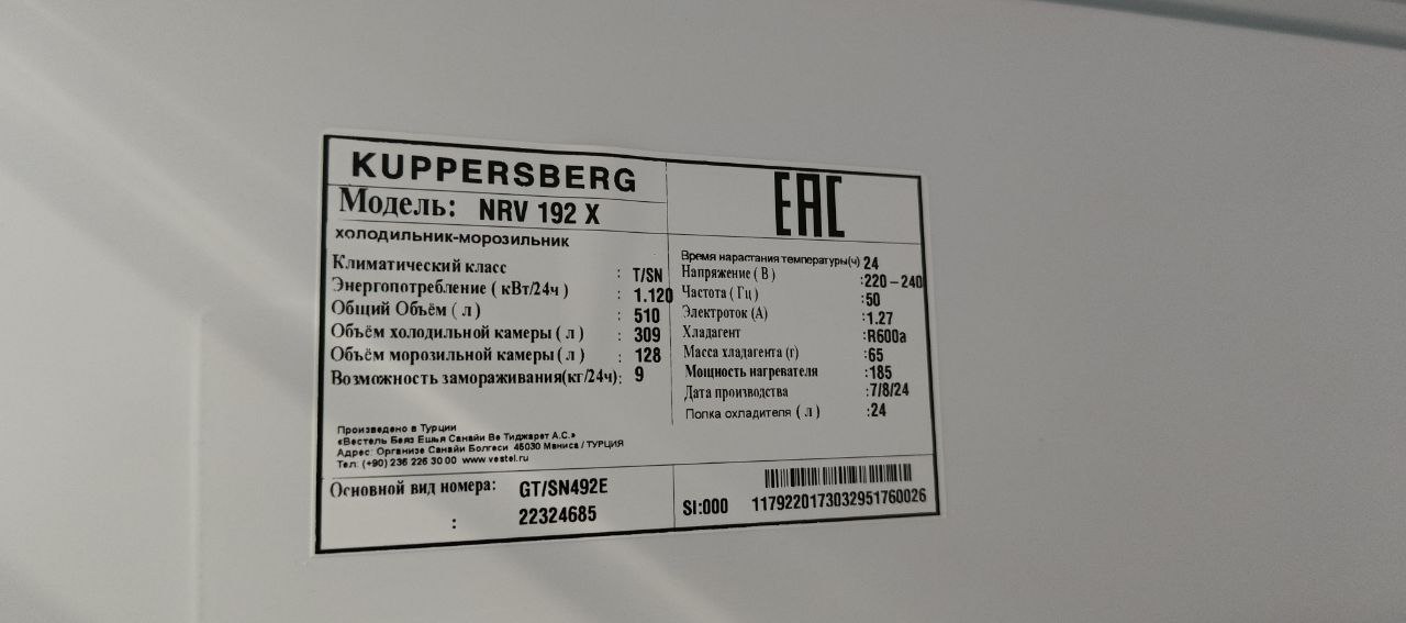 Отдельностоящий холодильник KUPPERSBERG NRV 192 X