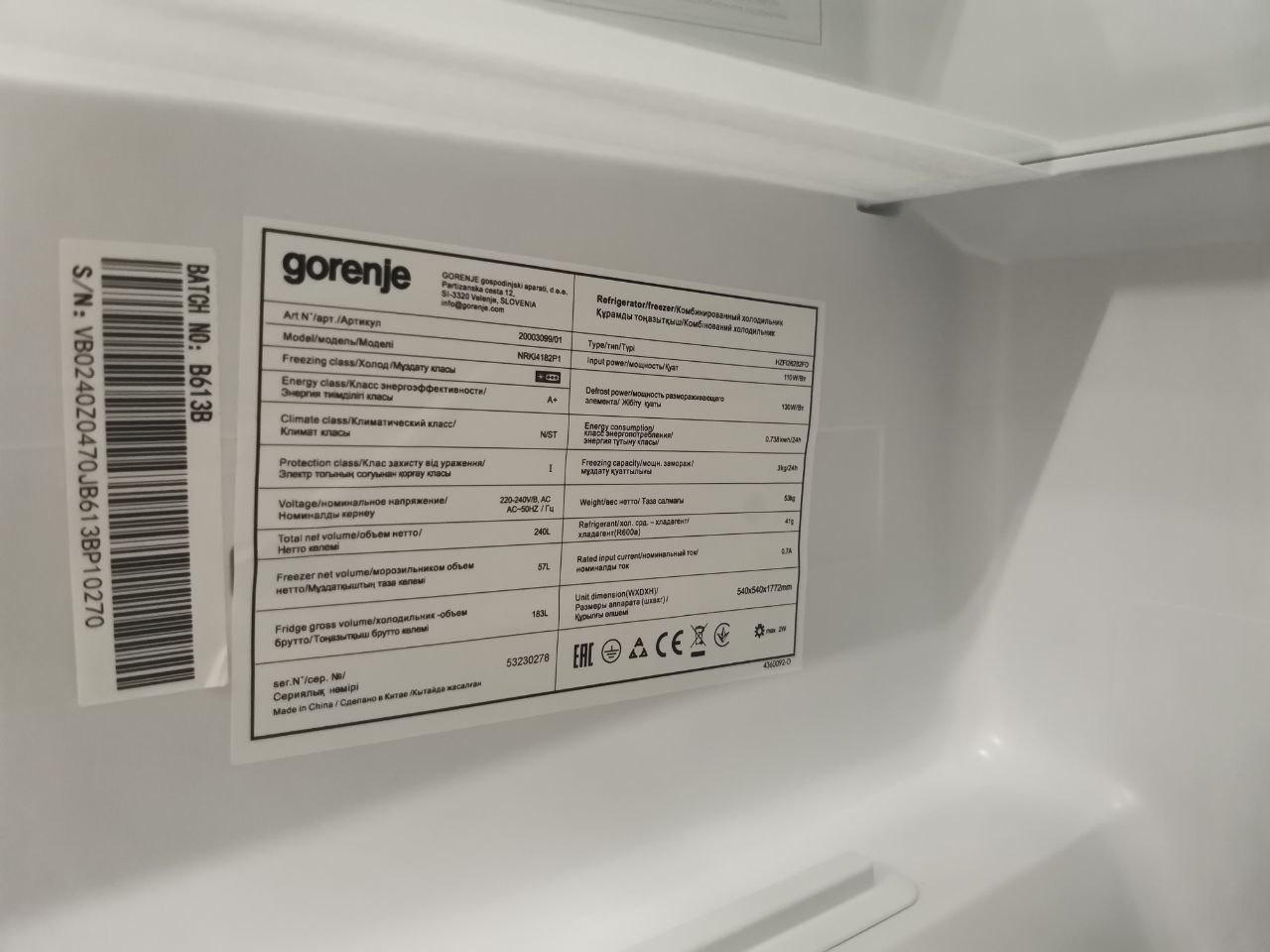 Полезный объем, л 240