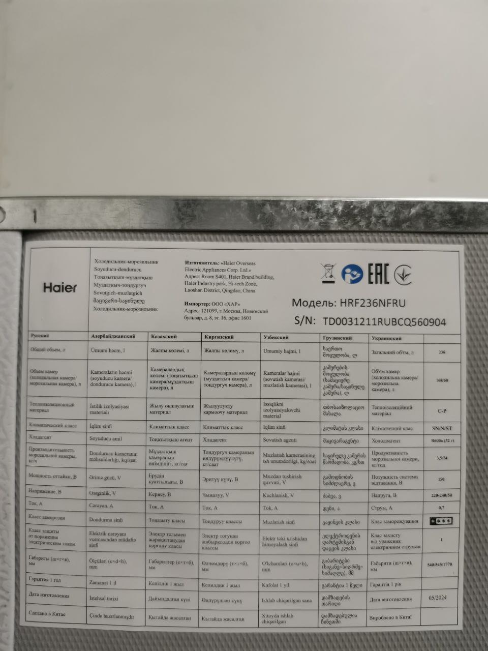 Встраиваемый холодильник HAIER HRF236NFRU