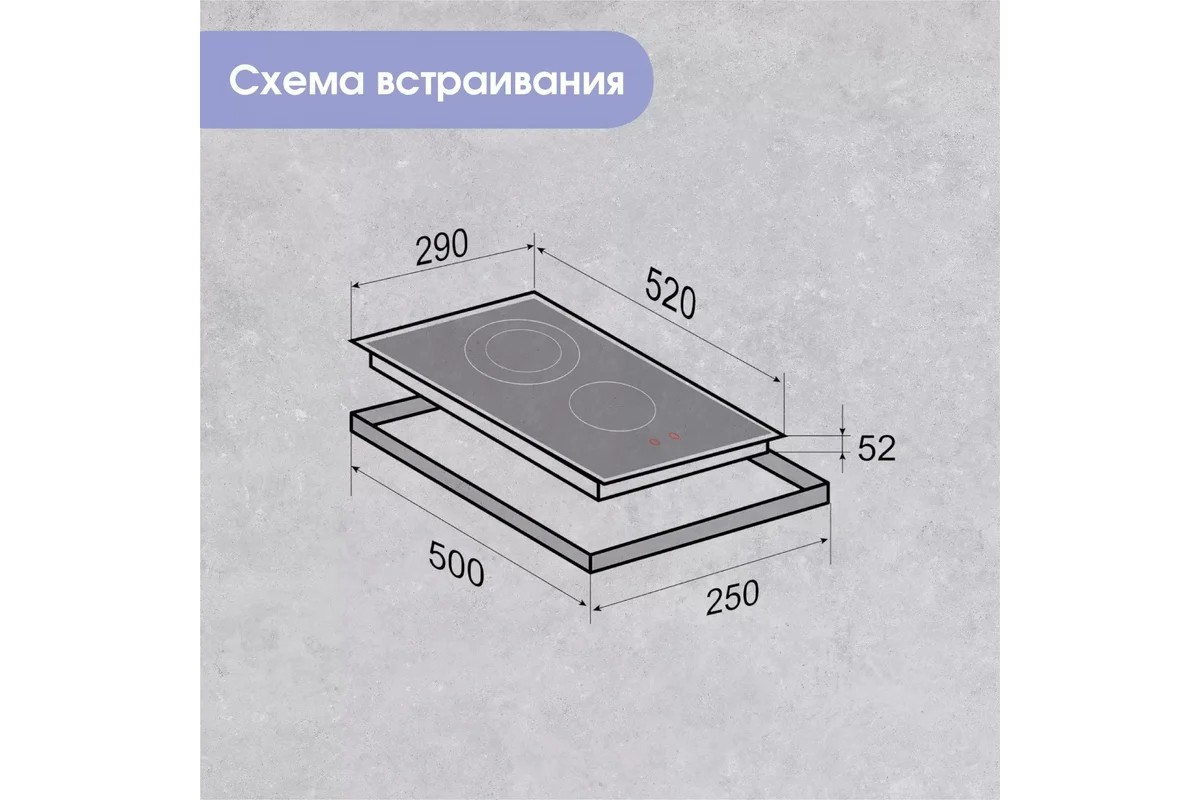 Размеры для встраивания: 260 х 490 мм