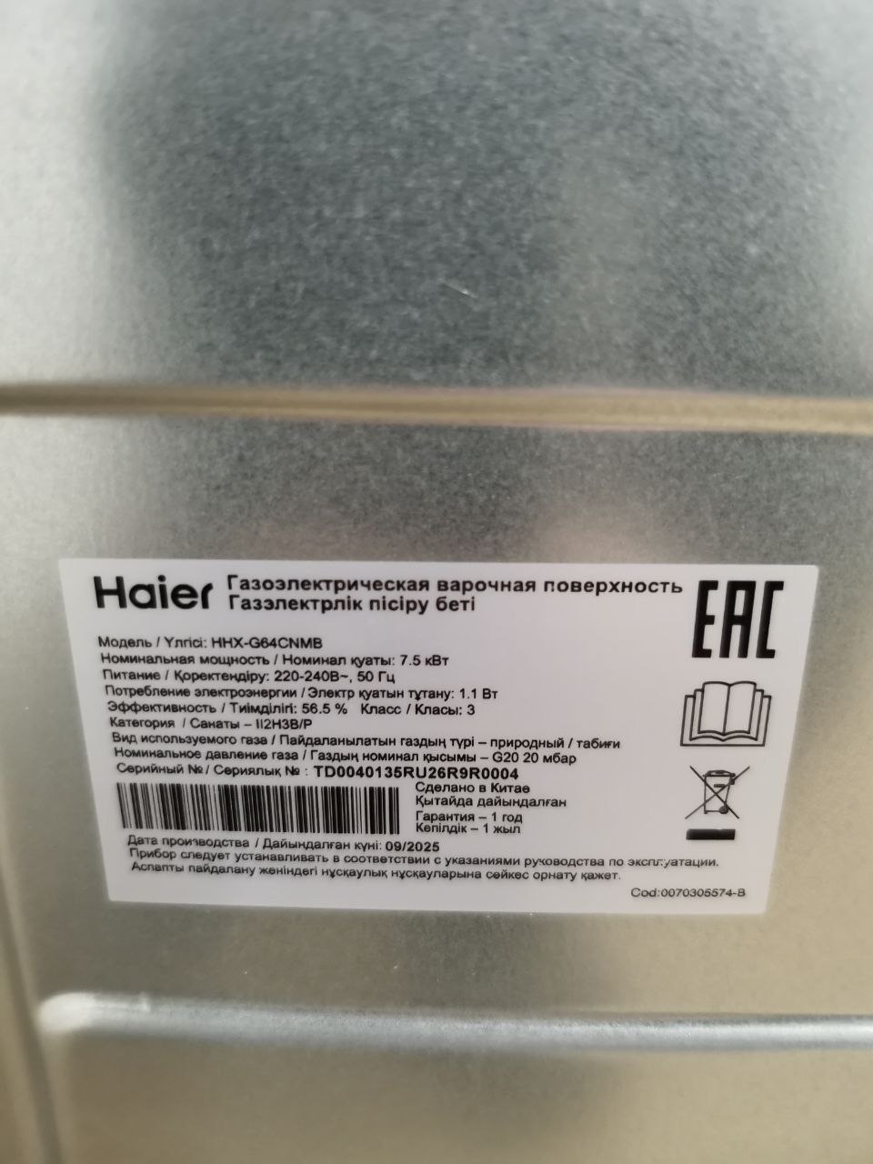 Варочная панель газовая HAIER HHX-G64CNMB черный