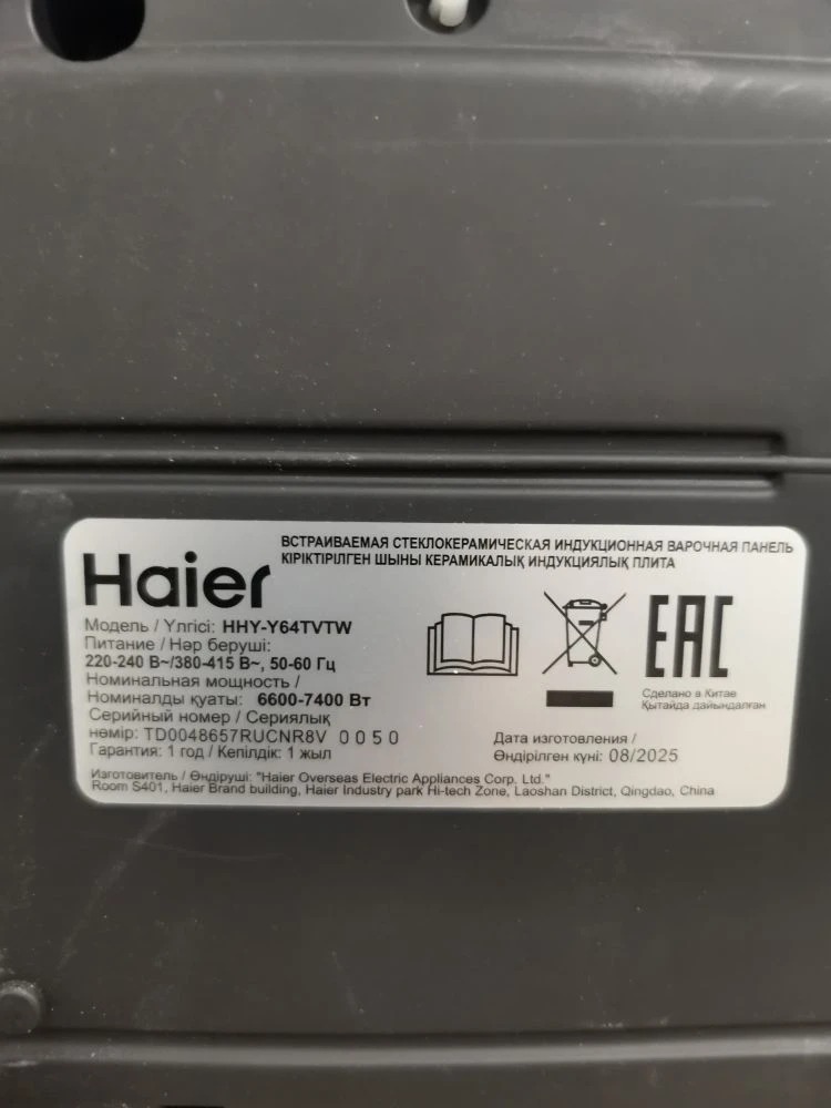 Количество конфорок: 4 индукционные