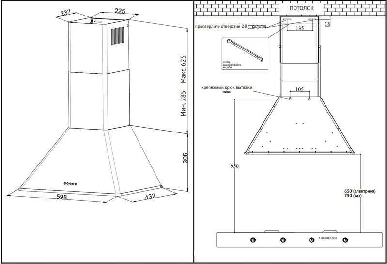 Габариты (ВхШхГ) (мм): 285-625х598х432