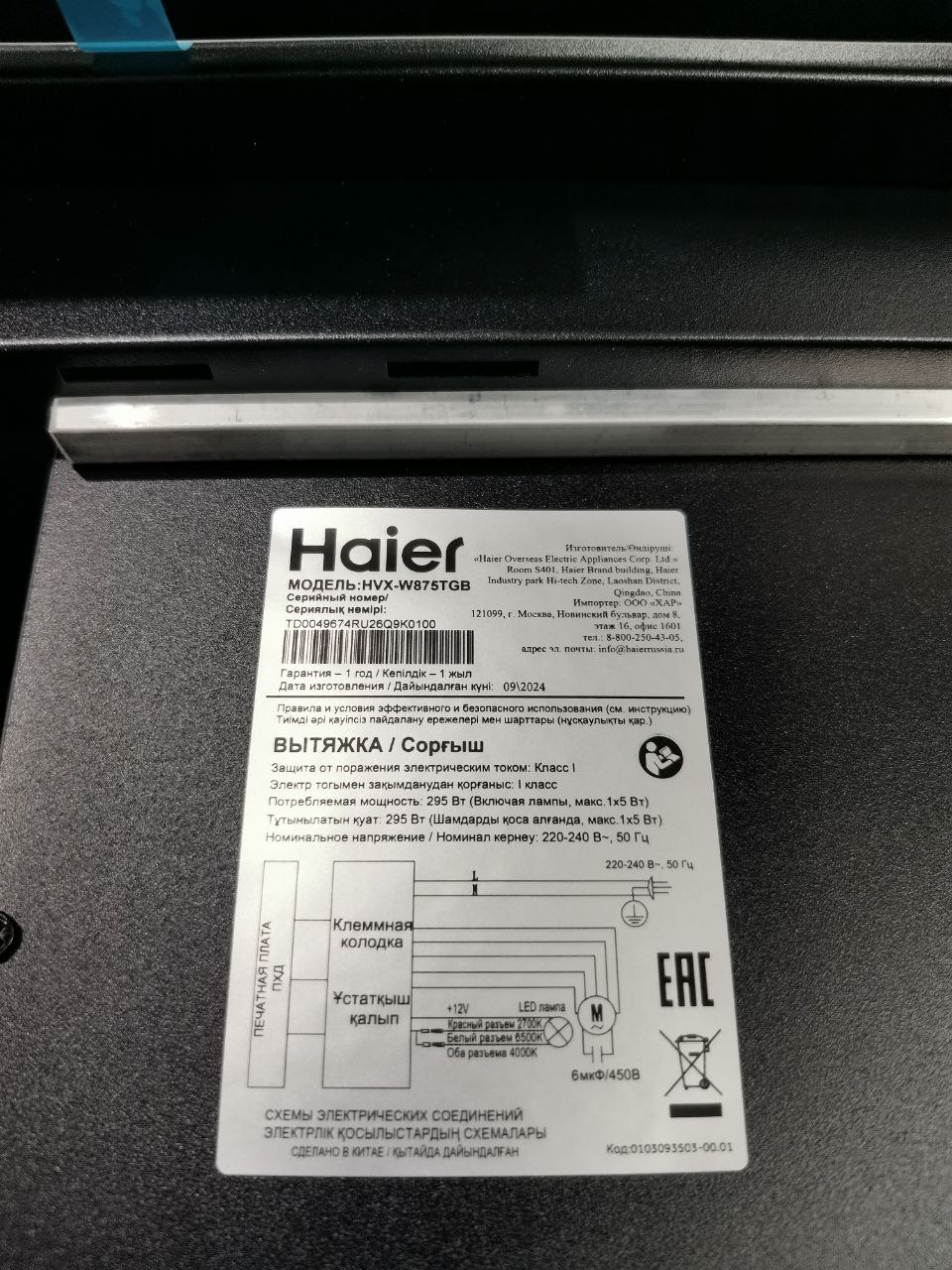 Фильтры очистки воздуха: Жировой, угольный (приобретается отдельно)