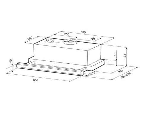 Габаритные размеры (В*Ш*Г) 172*600*305 мм
