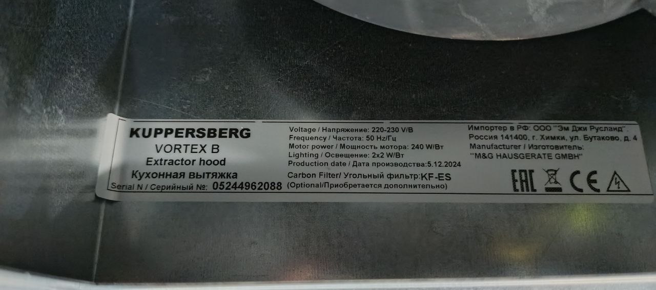 Тип угольного фильтра (опционально) Угольный фильтр Kuppersberg KF-V