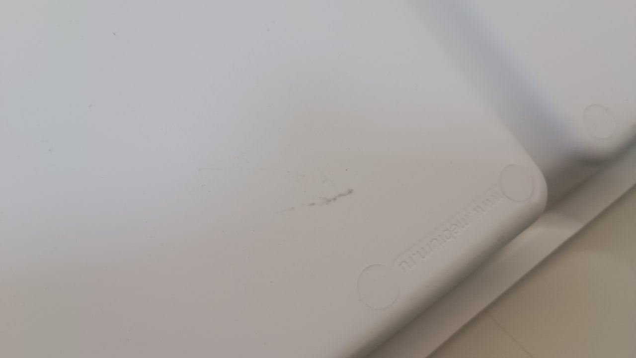 Загрязнения по периметру лотка; 1 край обломан; загрязнения с обратной стороны лотка