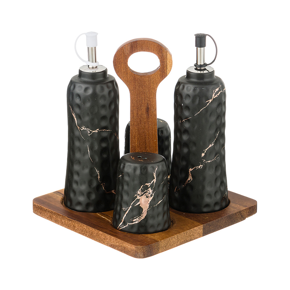 Набор для специй 4 предмета на деревянной подставке коллекция "золотой мрамор" цвет: black соль/перец Lefard (412-118)