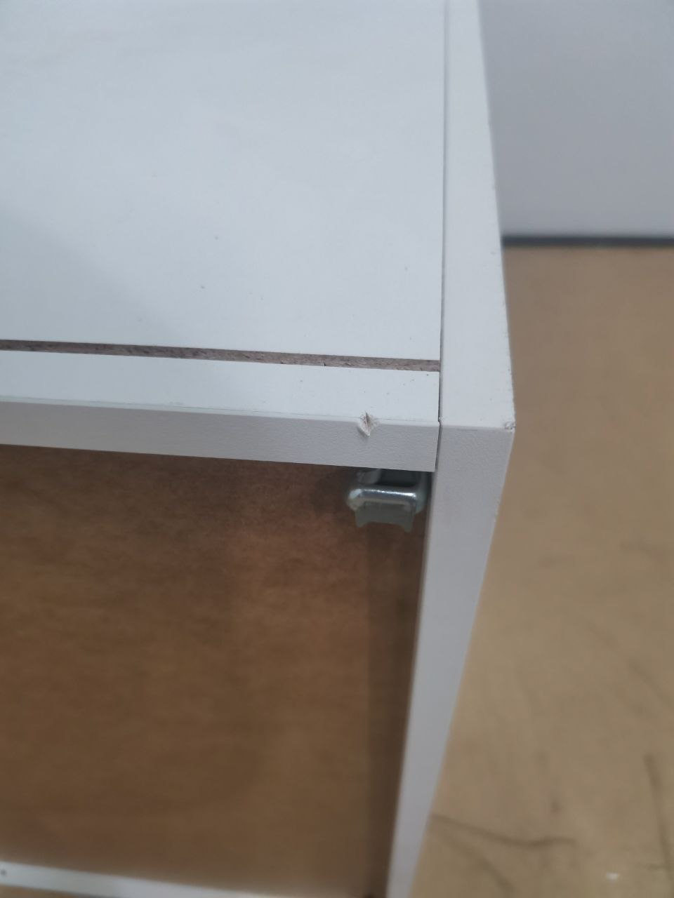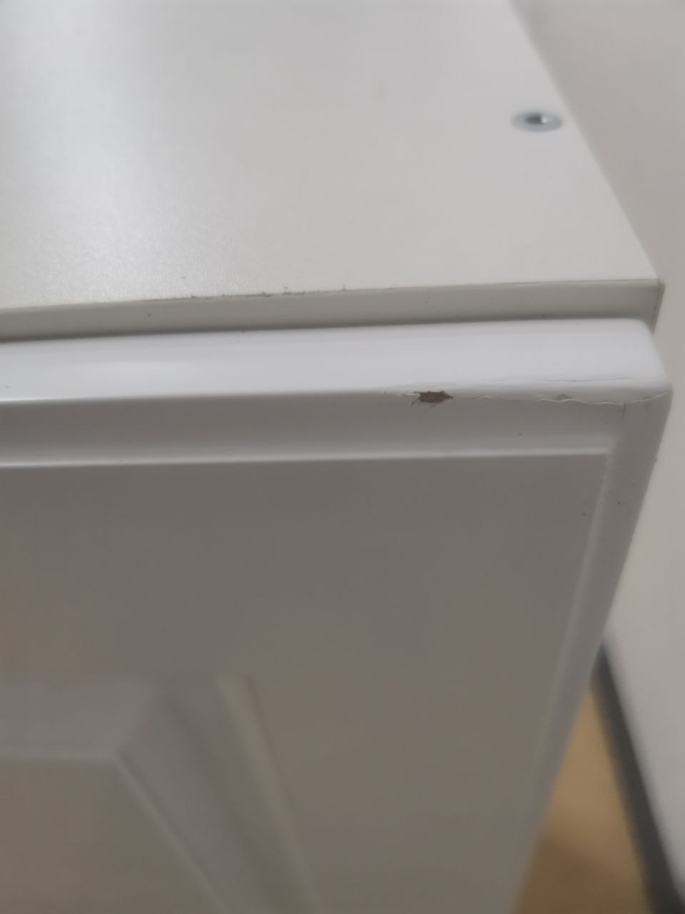 Скол на фасаде; верхняя крышка ящика собрана и запилена неверно