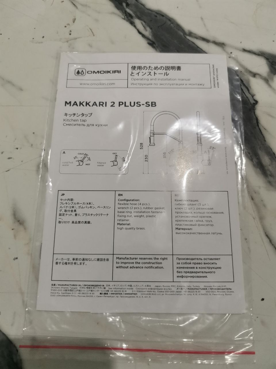 Высота смесителя 52,8 см