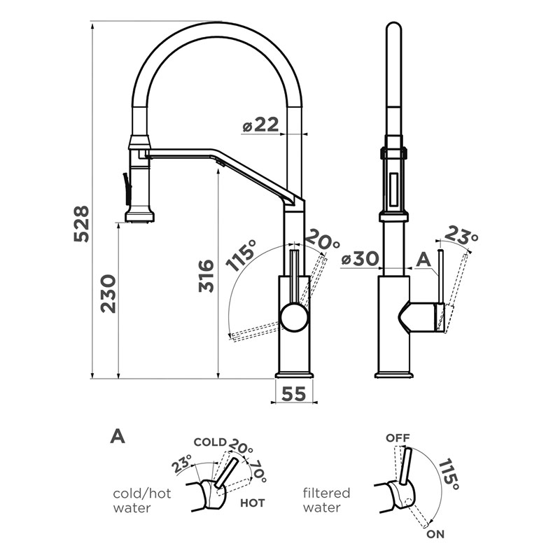 Высота излива 23,0 см