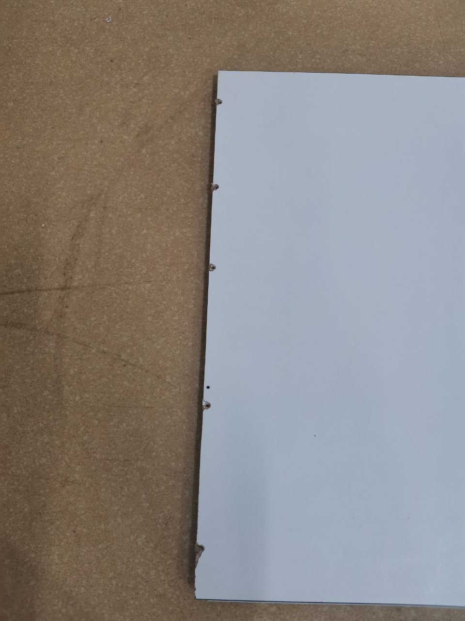 Повреждение углов; сделаны вырезы под розетки; требуется дополнительная очистка
