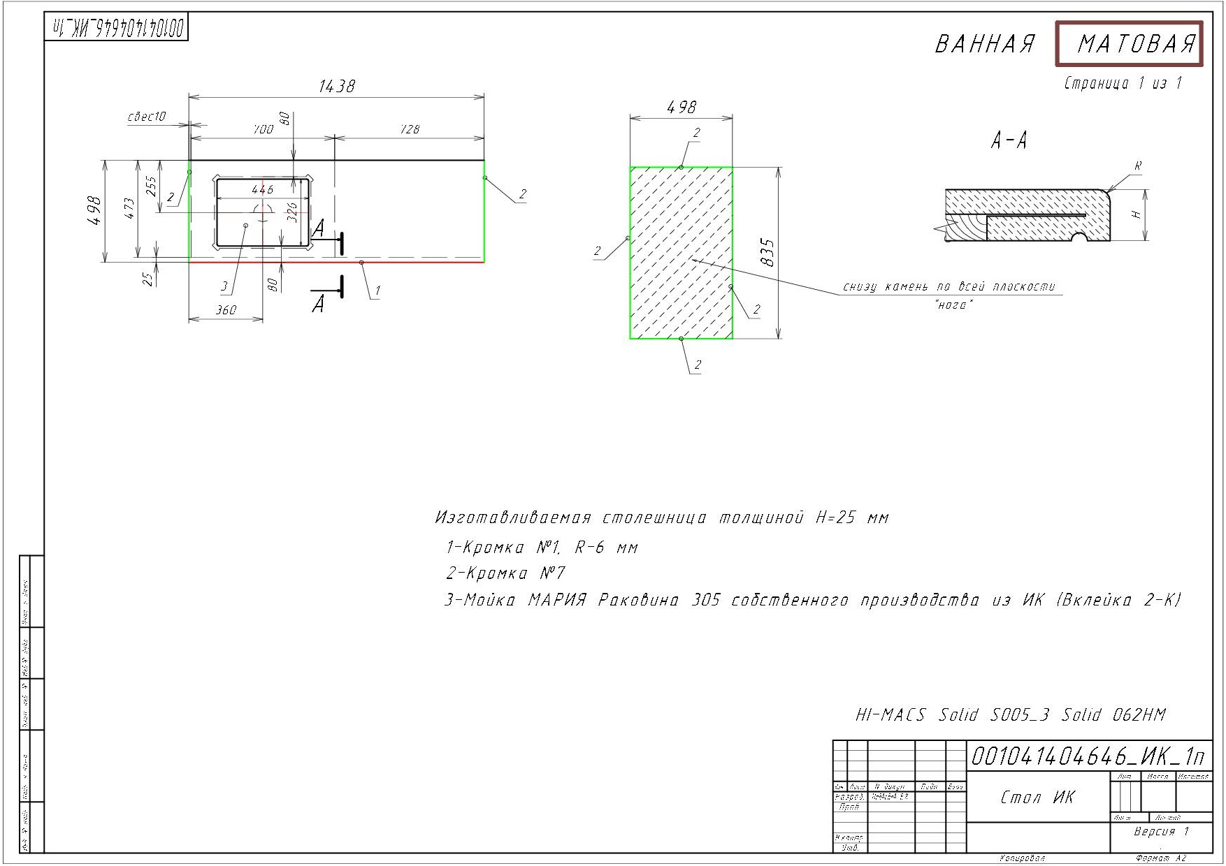 Столешница из ИК (Н=25 мм) 1.420х0.500