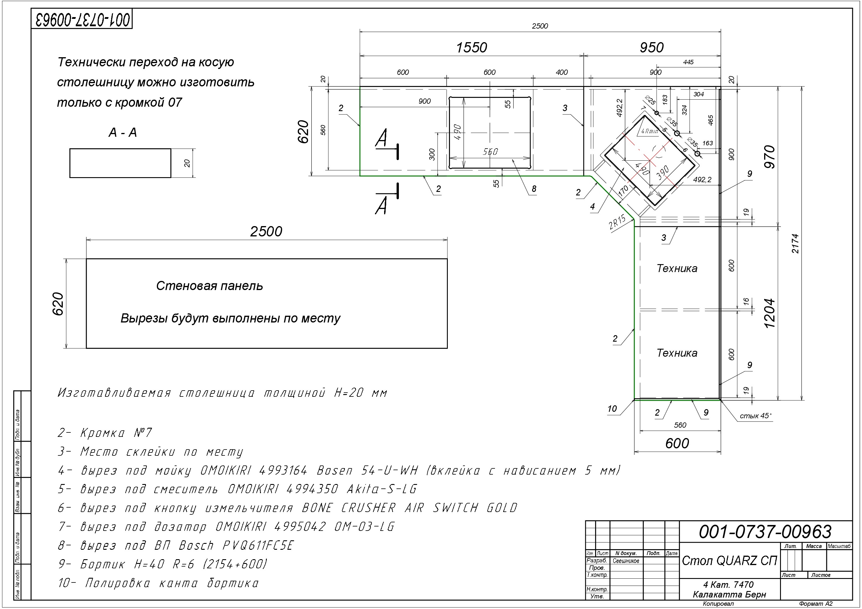 Столешница Кварц СП (Н=20 мм), кв.м. (1.550*0.620)