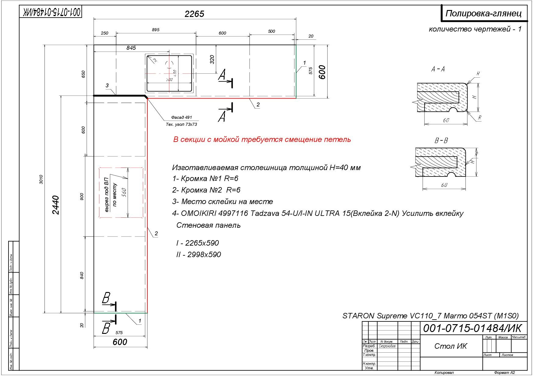 Столешница из ИК с мойкой Н=40 мм (2.265х0.600)