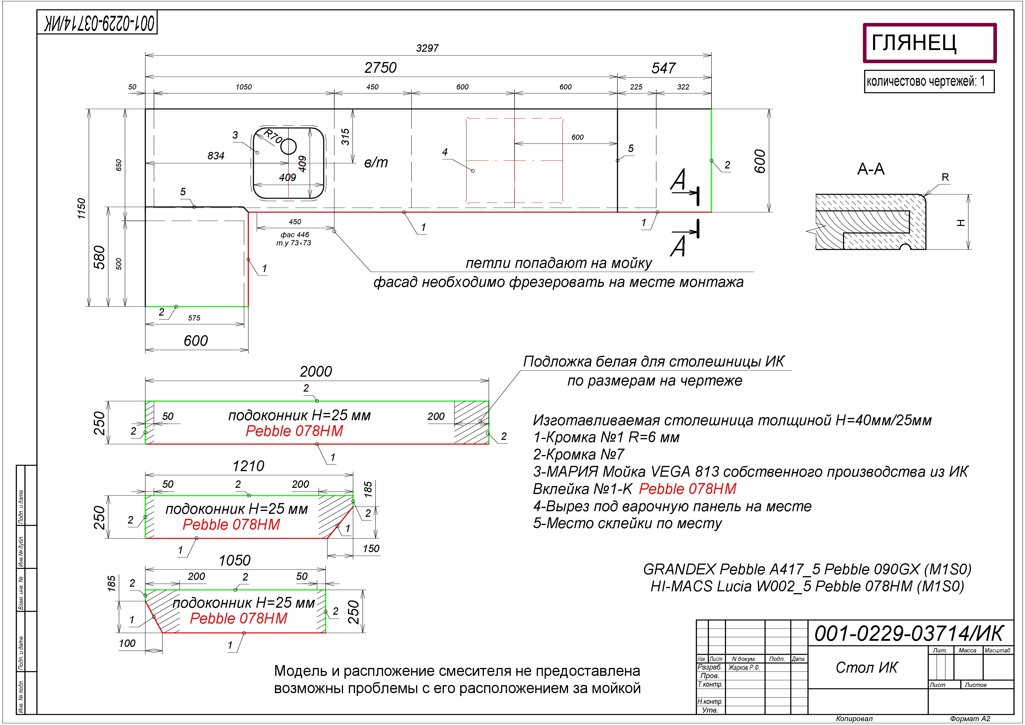 Мойка МАРИЯ VEGA 813 собственного производства из ИК ПОДСТОЛЬНЫЙ МОНТАЖ (Набор) Вклейка №1-K