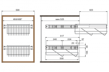 Система выдвижения: полное выдвижение с плавным закрыванием