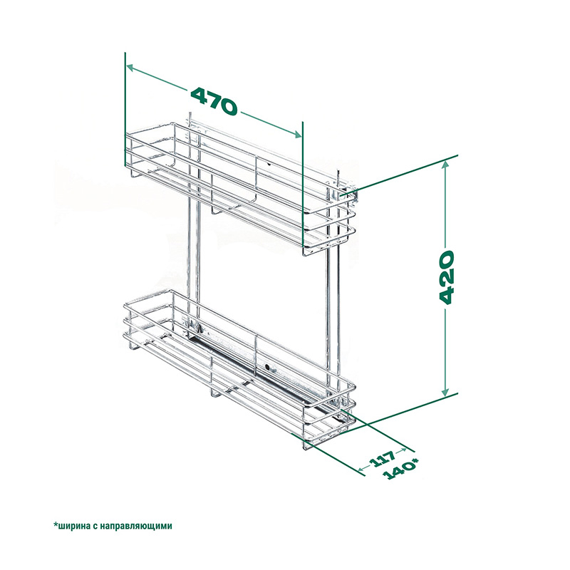 Габаритные размеры: ширина 135 мм, глубина 475 мм, высота 400 мм.
