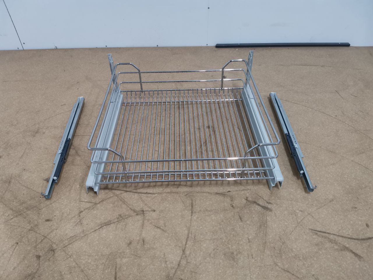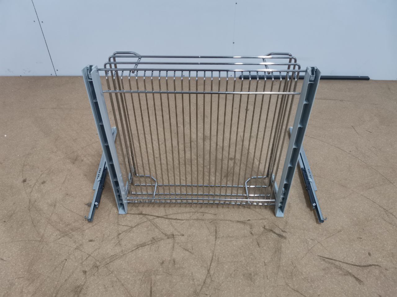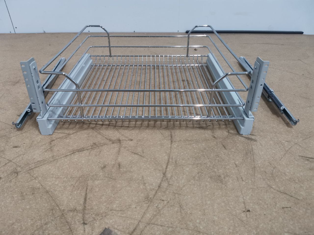 Одна выдвижная сетка с фасадным креплением в секцию с выдвижным фасадом шириной 600 мм. Минимальная внутренняя глубина секции 510 мм. Корзина в отделке хром глянцевый с мягким закрыванием. Можно устанавливать в секции с выдвижным фасадом 360. Высота корзины - 195 мм, нагрузка - 25 кг. Крепление к фасаду предустановлено. Крепеление к каркасу к обеим боковинам секции.