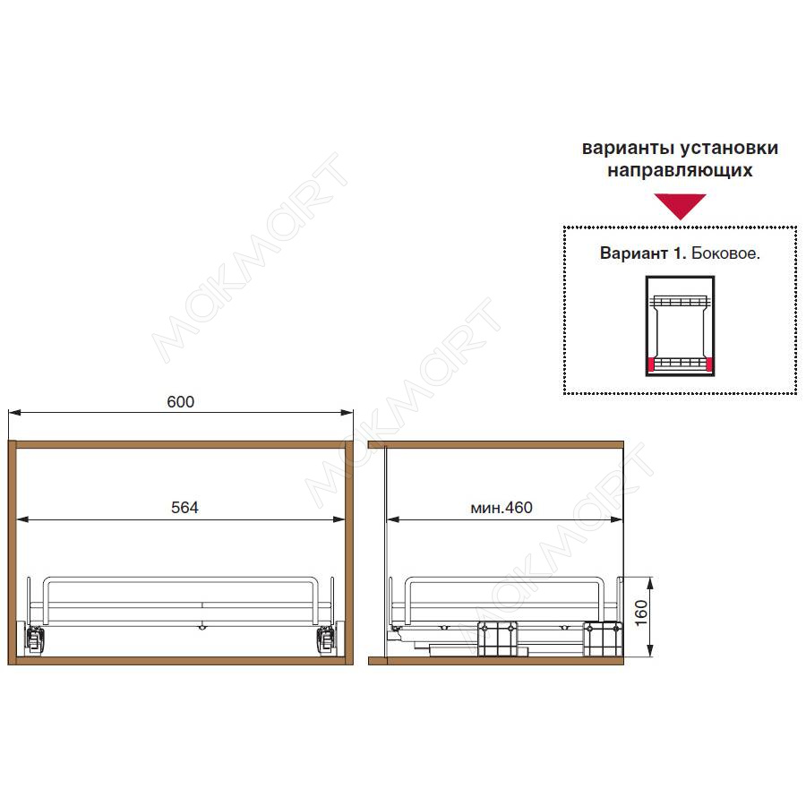 Одна выдвижная корзина за один распашной фасад шириной 600.