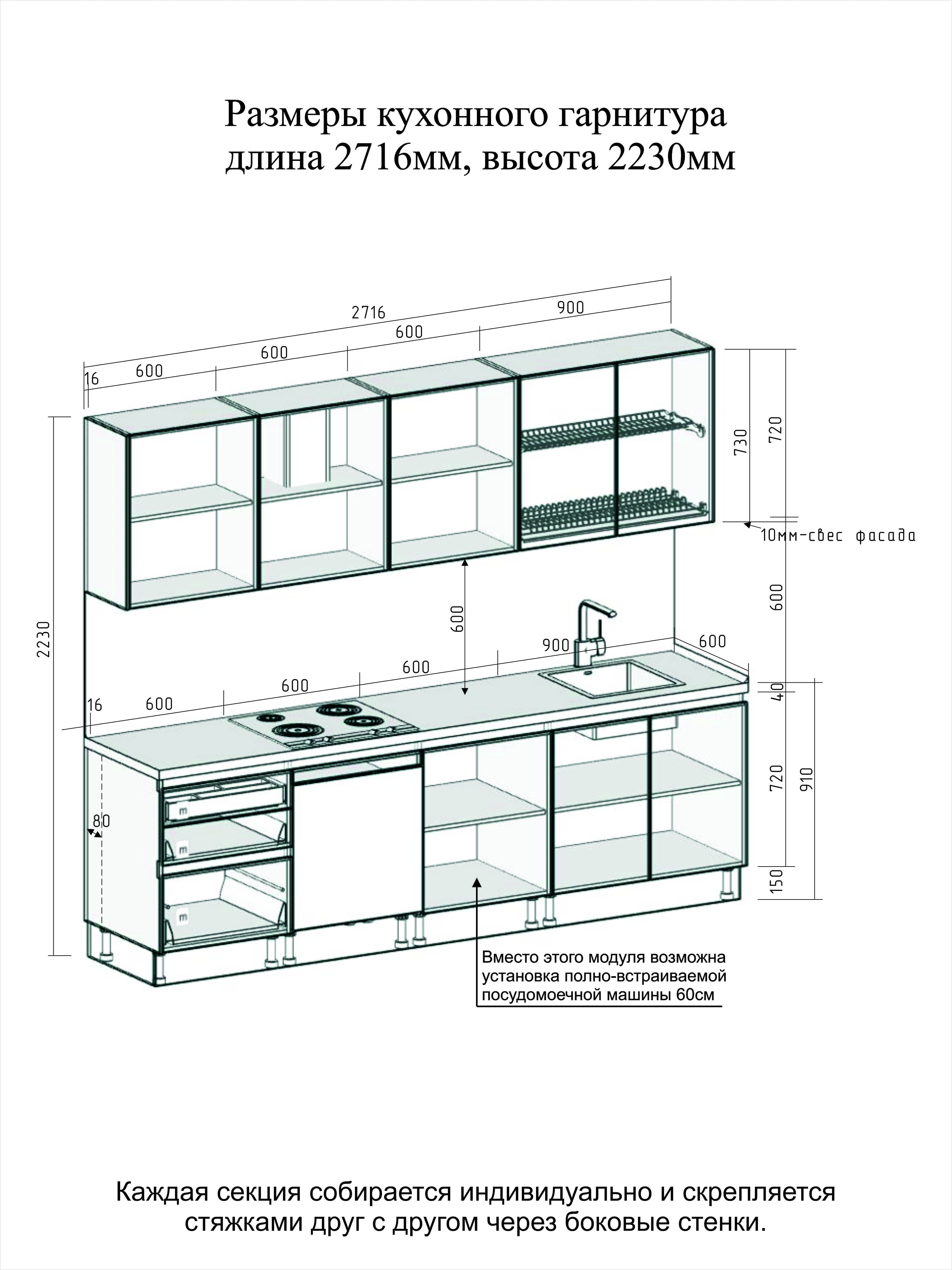 Размер Кухни В/Ш/Г: 2230/2716/600 мм. (см. эскиз)