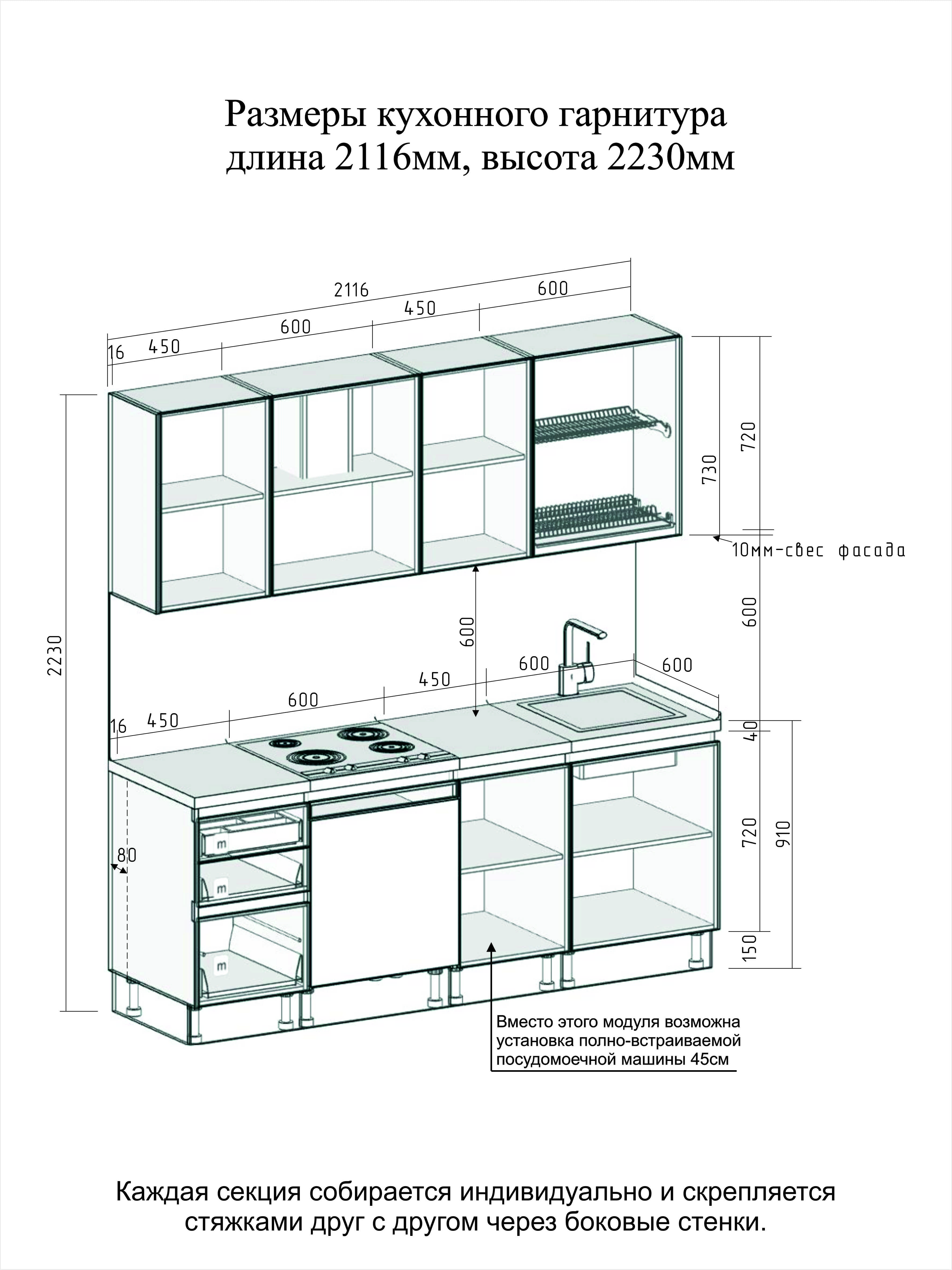 Размер Кухни В/Ш/Г: 2230/2116/600 мм. (см. эскиз)
