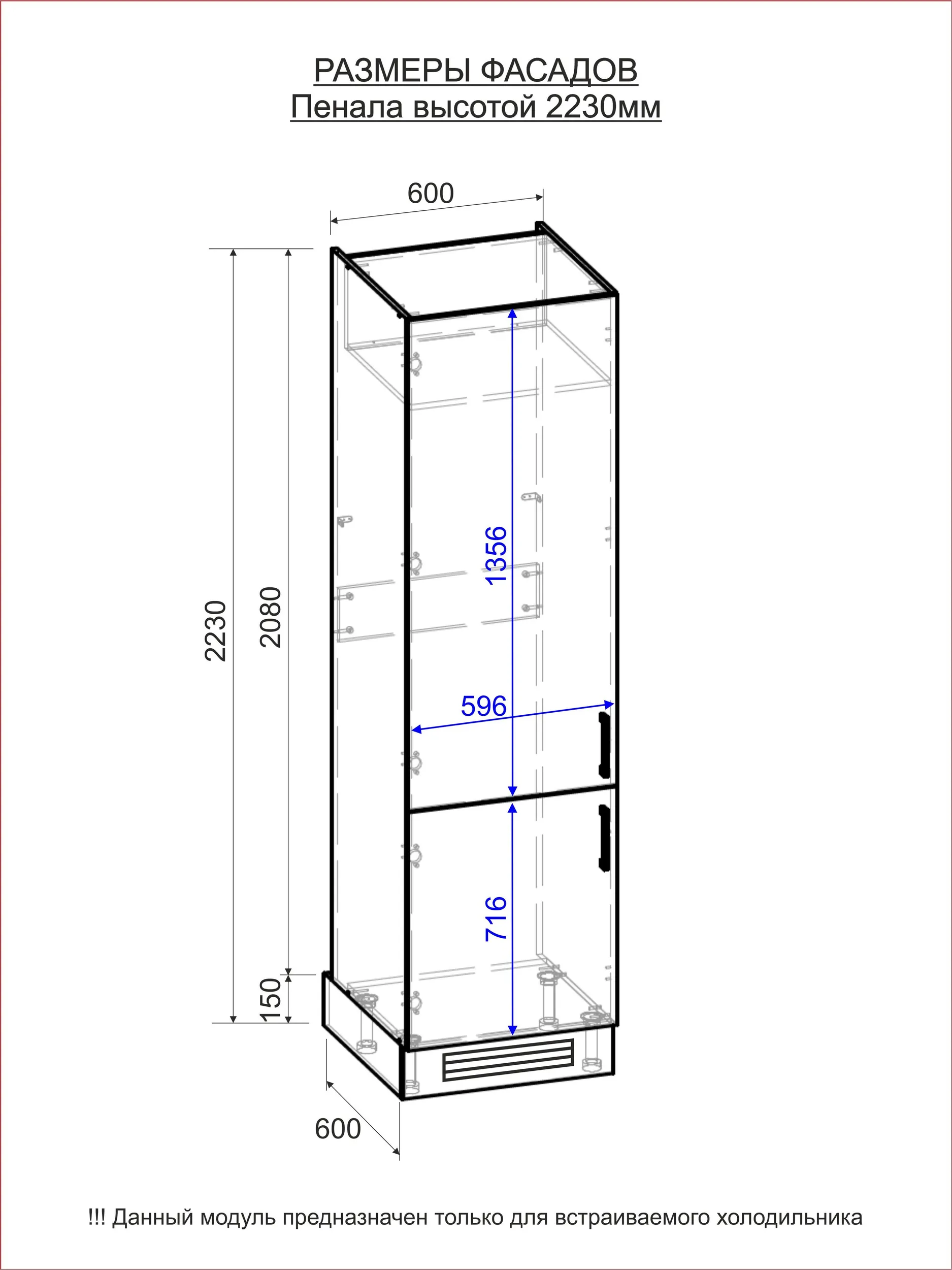 Размер Модуля В/Ш/Г: 2230/600/600 мм. (см. эскиз)