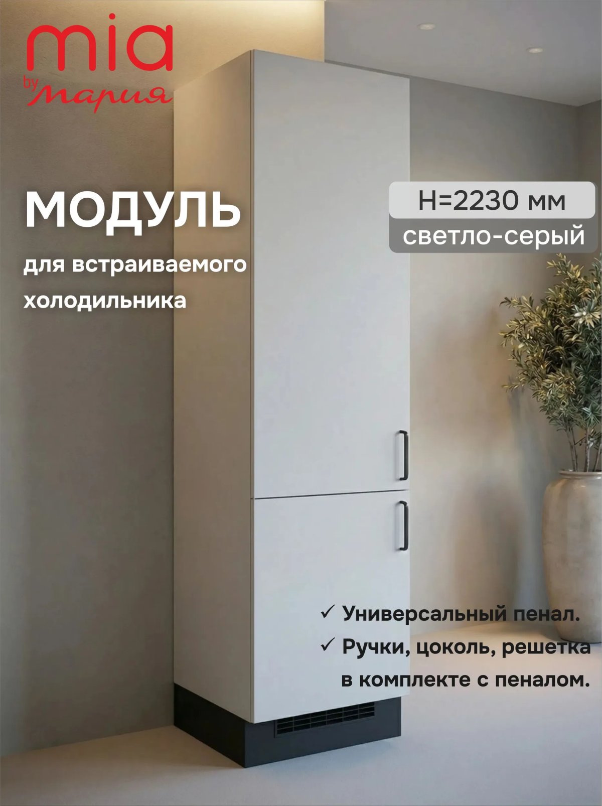 Модуль/пенал для встраивания холодильника светло-серый