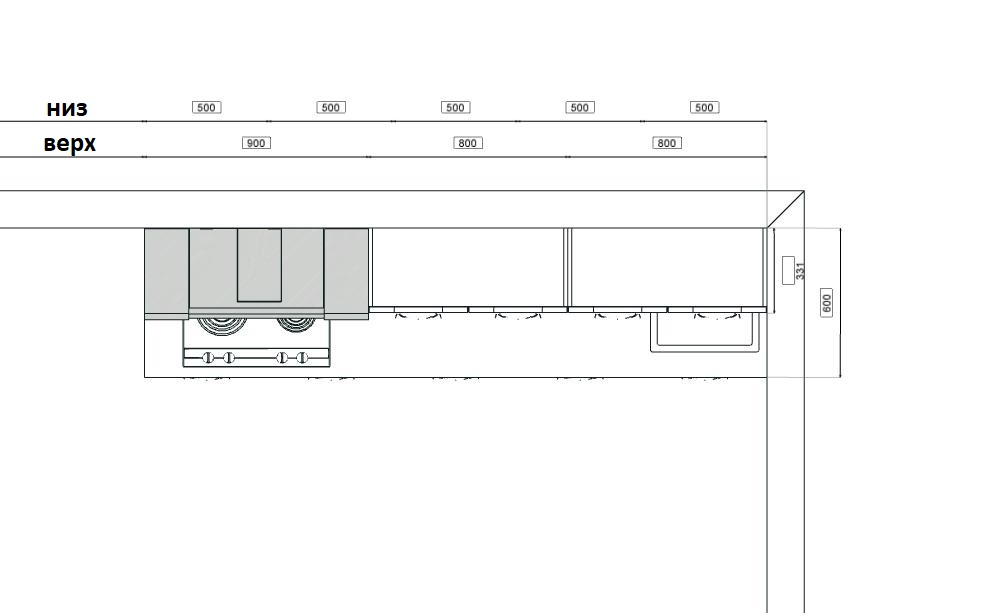 Вырезы под мойку и варочную поверхность в столешнице отсутствуют