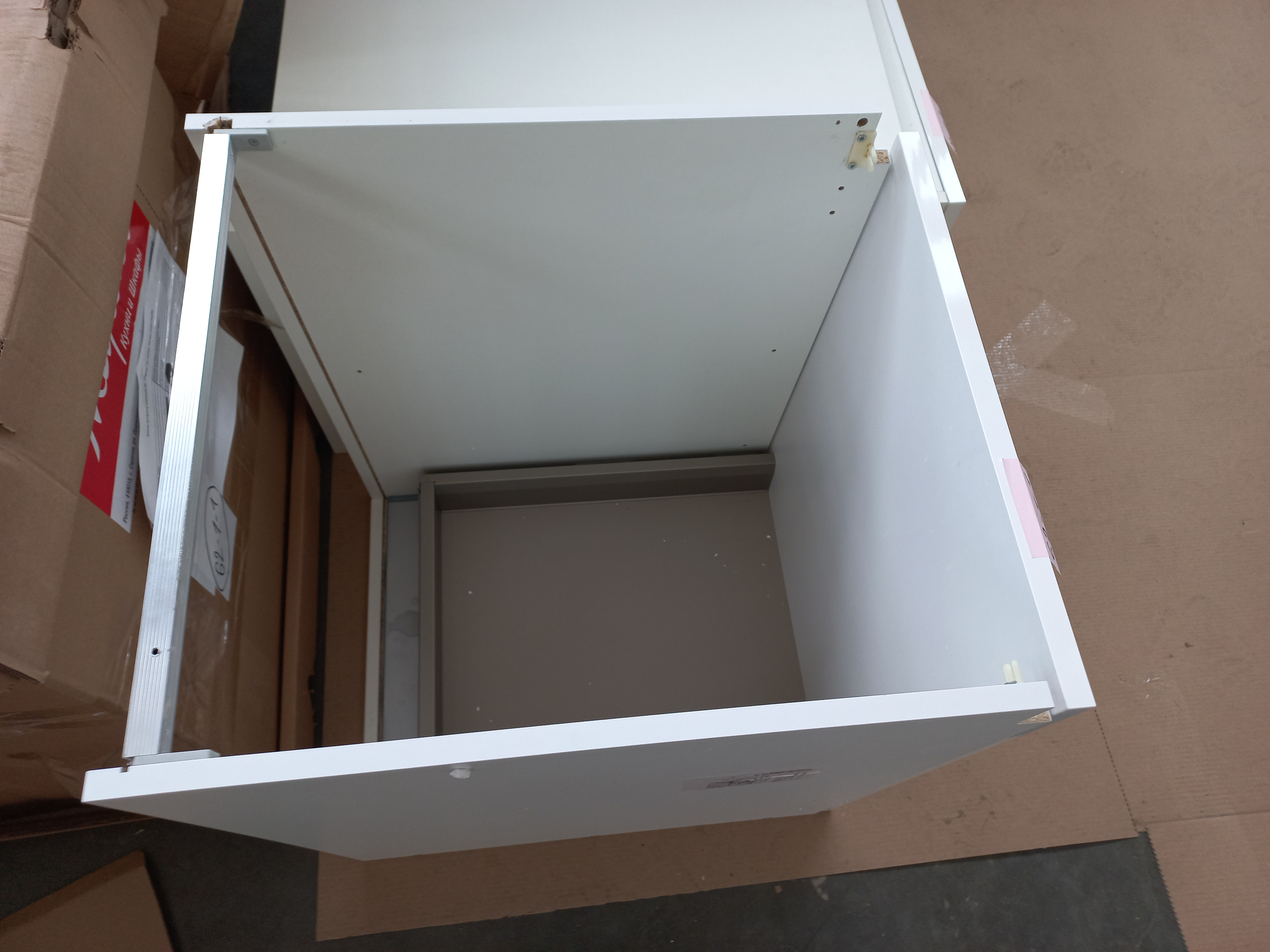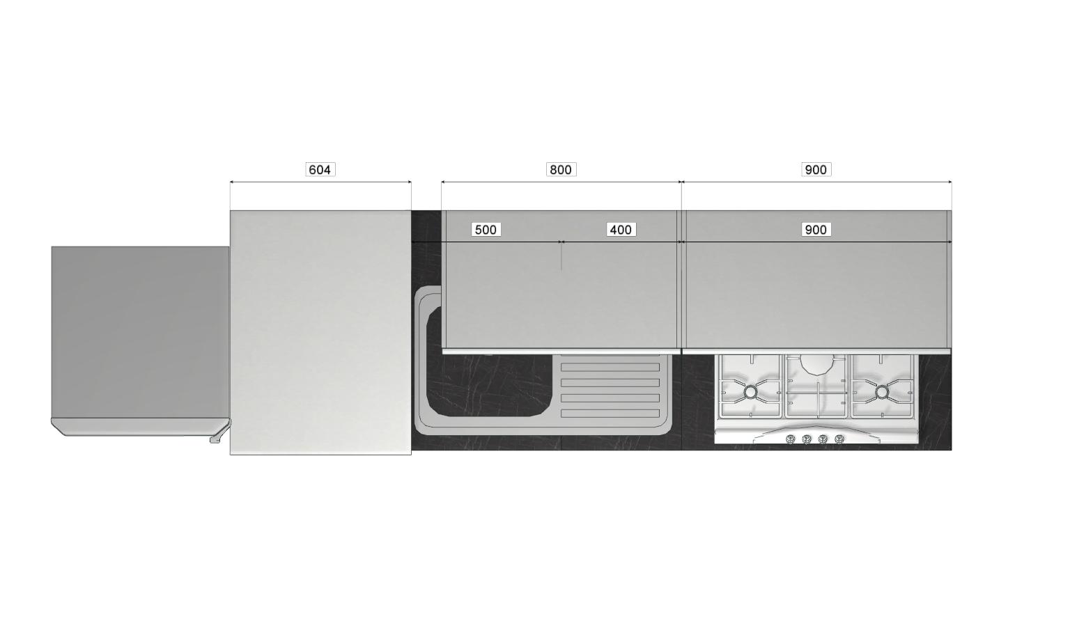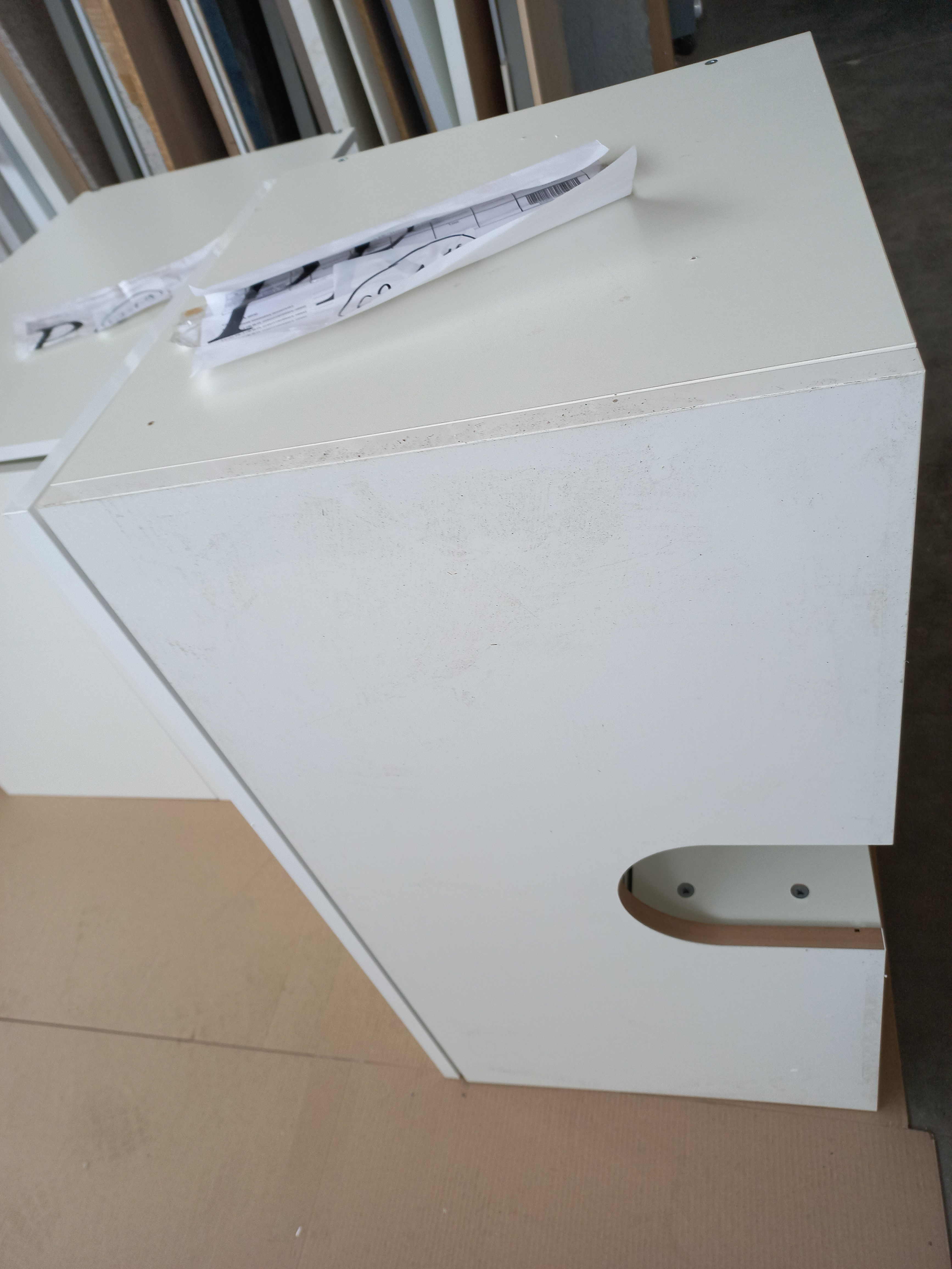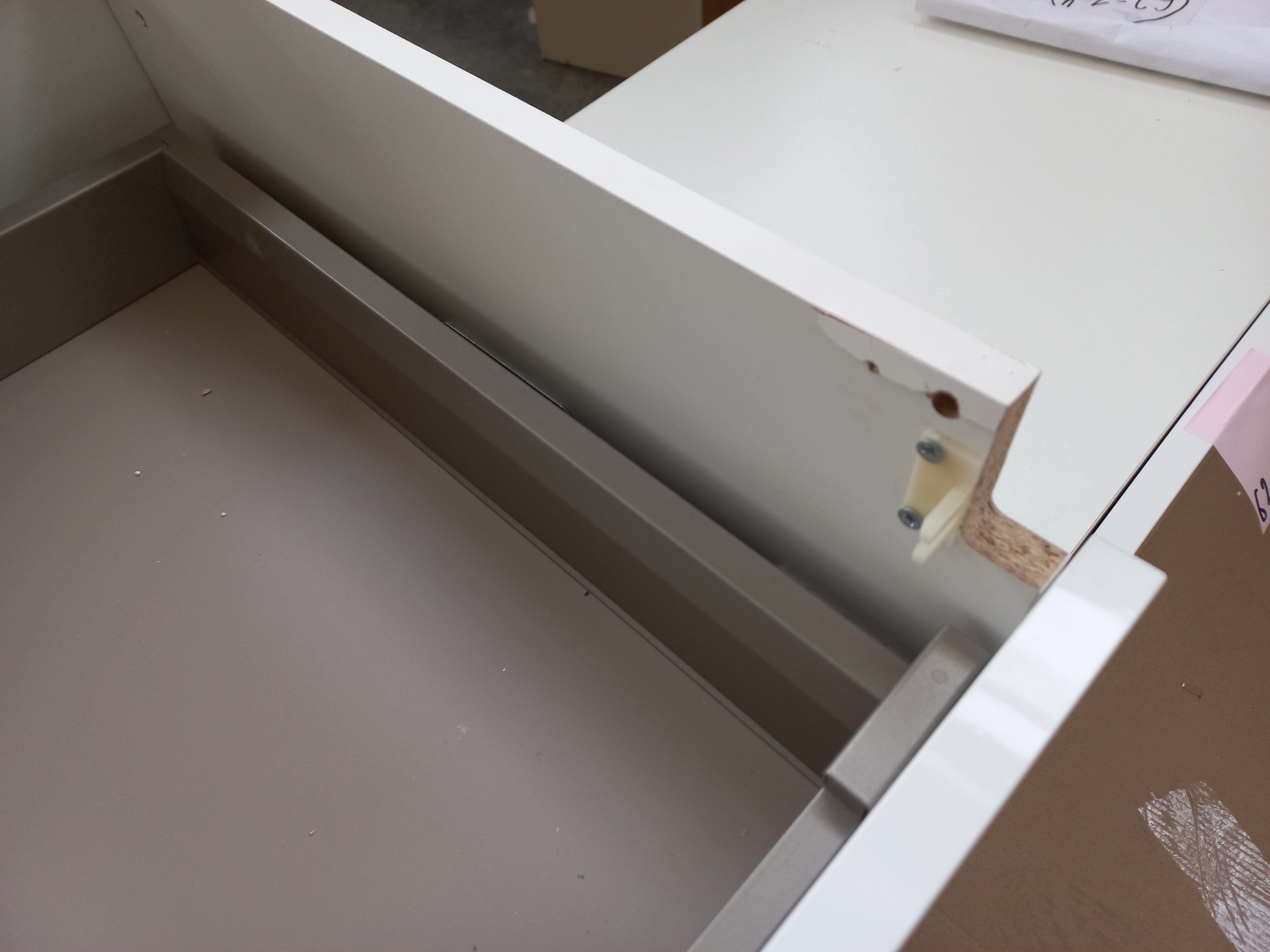 Внешний вид, описание дефектов: Возможно присутствие незначительных потертостей и царапин. Сколы, царапины, вырезы каркаса. В некоторых секциях сломаны: скрепляющие части каркаса и элементы каркаса рядом с профилем GOLA (см. фото). Секция над варочной панелью под встраиваемую вытяжку, с фасадным дном снизу (см. фото). Нестандартные глубины секций подразумевают свес столешницы сзади 200мм.