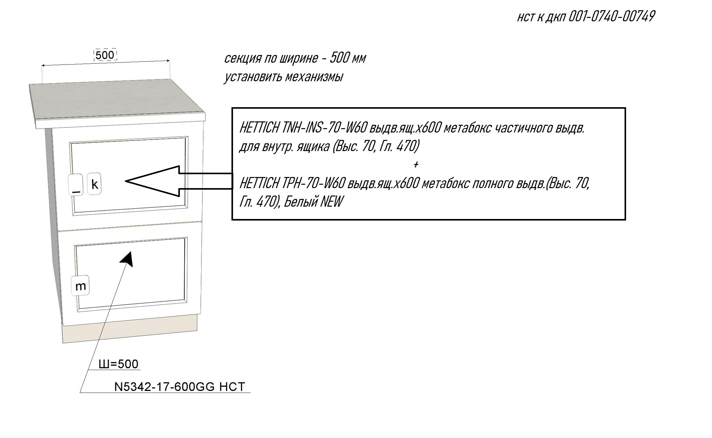 - (10 шт.) метабокс полного выдвижения HETTICH