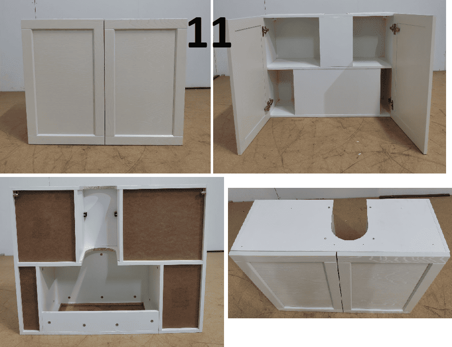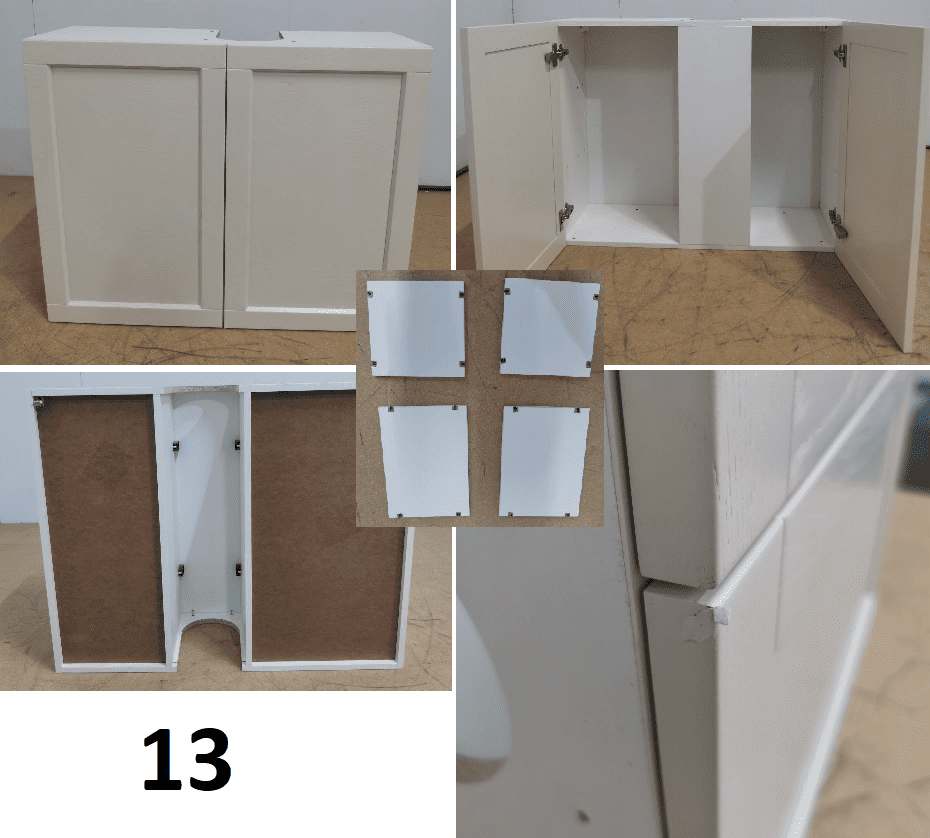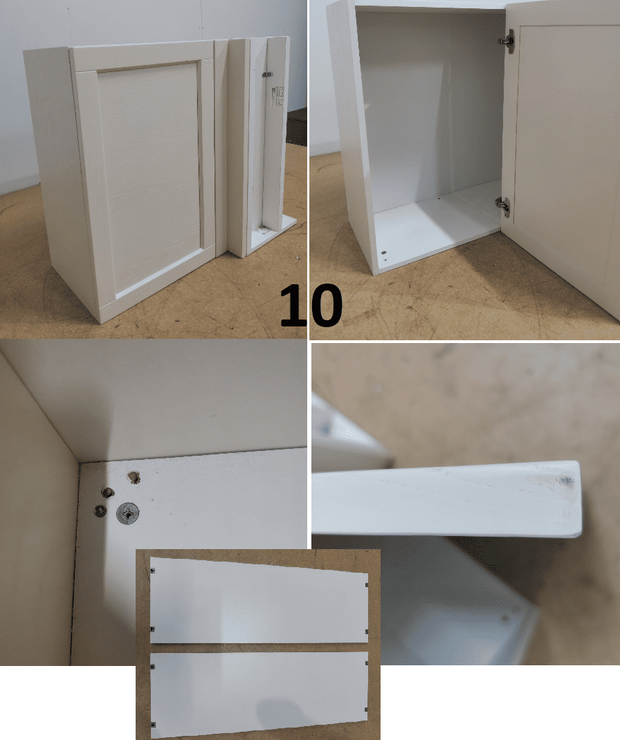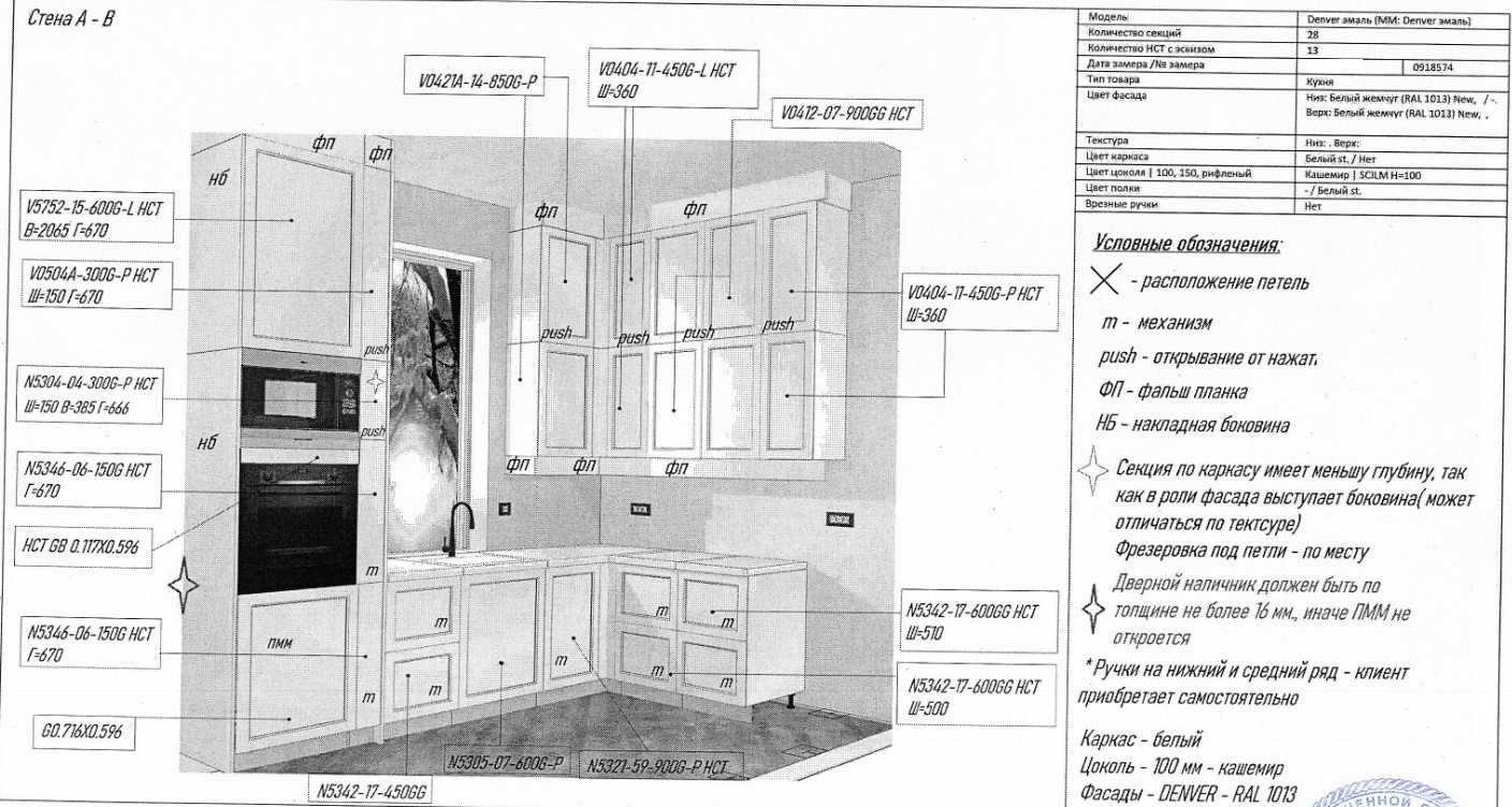 Внешний вид, описание дефектов: Кухонный гарнитур устанавливался! Имеются выпилы и установочные отверстия. В некоторых позициях гарнитура имеются дефекты. Дефекты указаны под номерами секций которые отражены на эскизе и прописаны в спецификации – в характеристиках товара! Во всех остальных позициях дефекты не обнаружены, могут присутствовать незначительные потертости, царапины. Все секции модульные, возможно изменение конфигурации в рамках данных комплектующих.