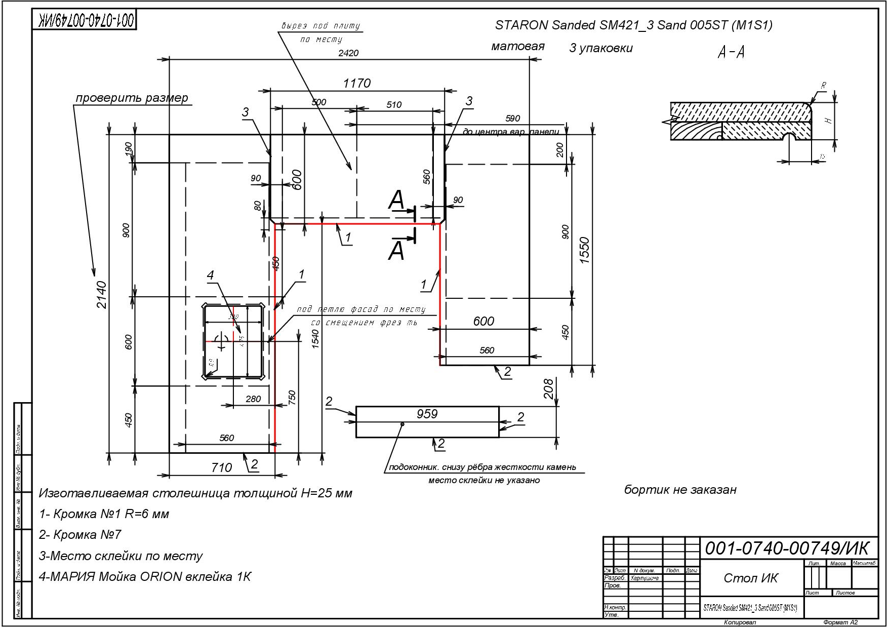 Цвет столешницы: Sanded SM421_3 Sand 005ST (M1S1)