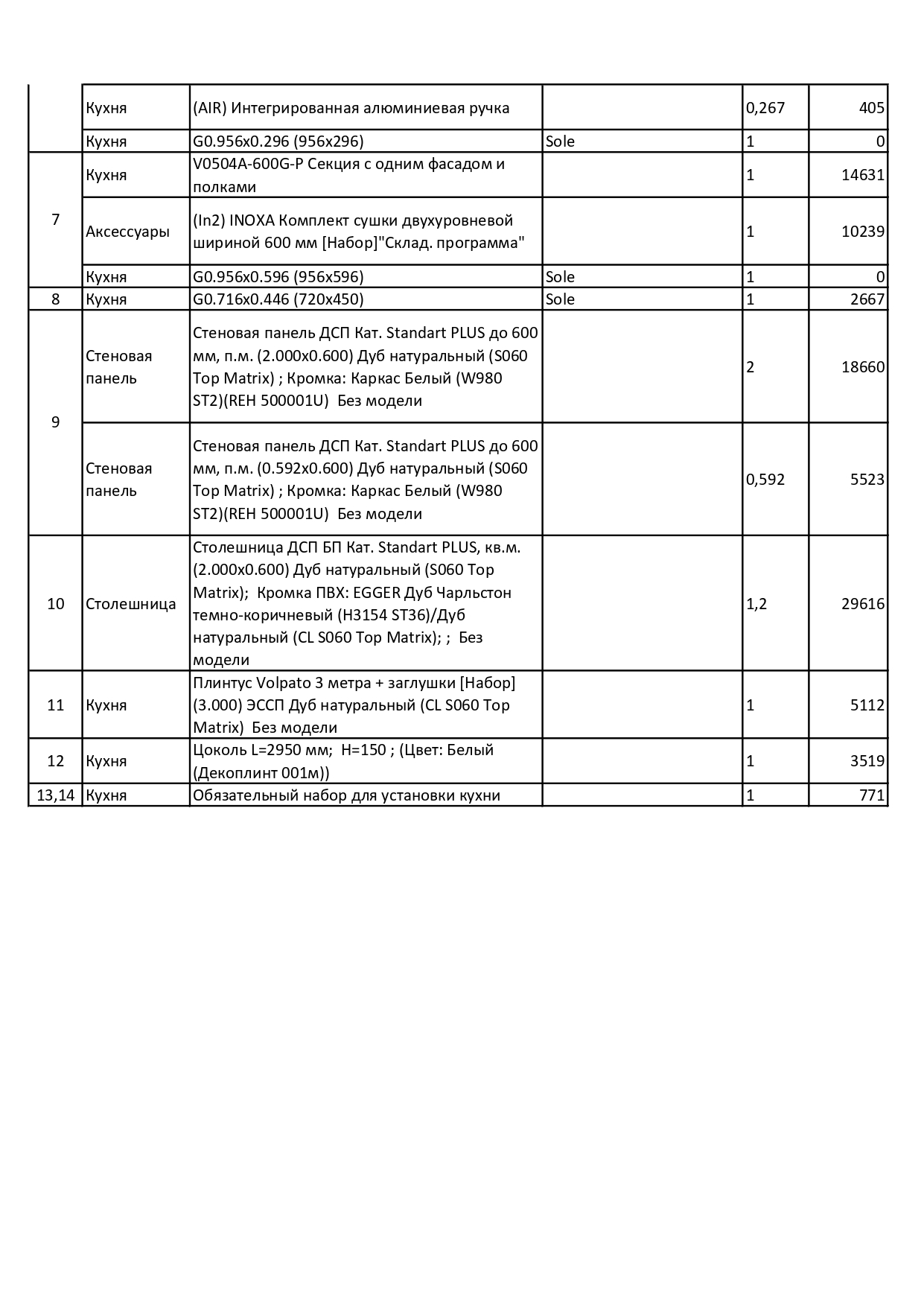 Подробный перечень комплектующих данной кухни - в спецификации/характеристиках товара.