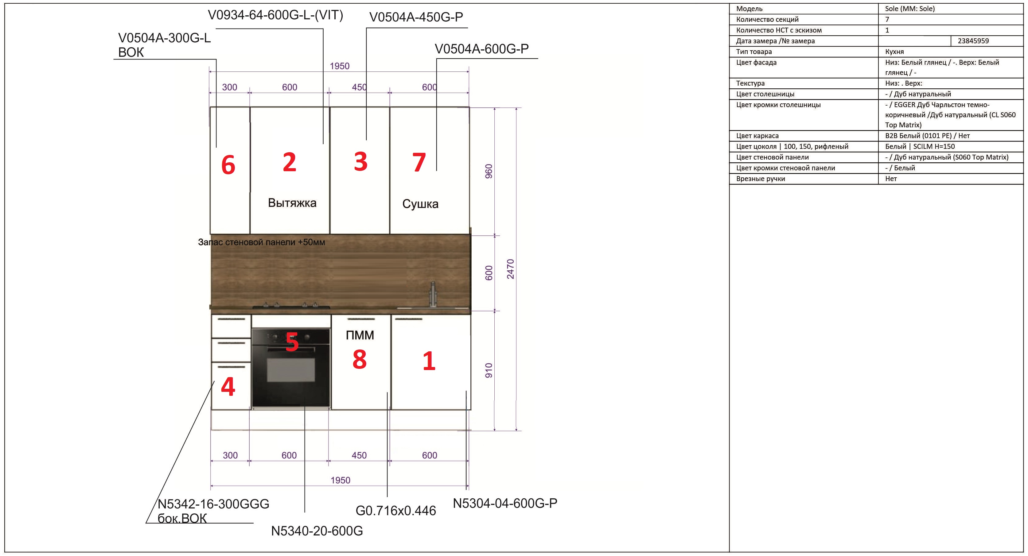 Размер Кухни В/Ш/Г: 2470/1950/600 мм.