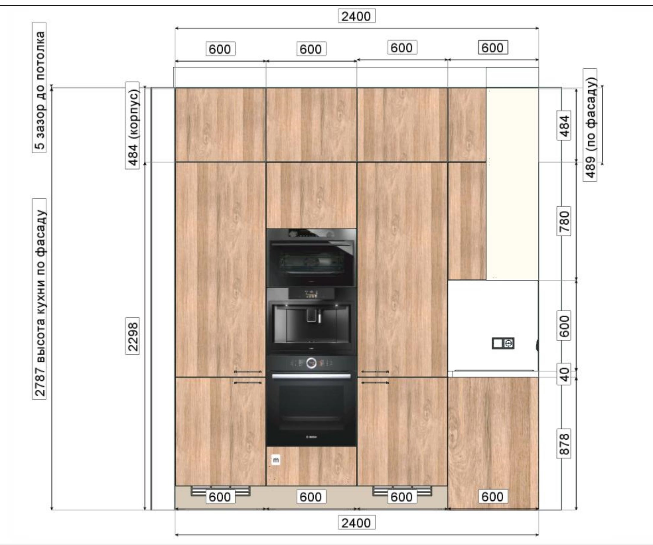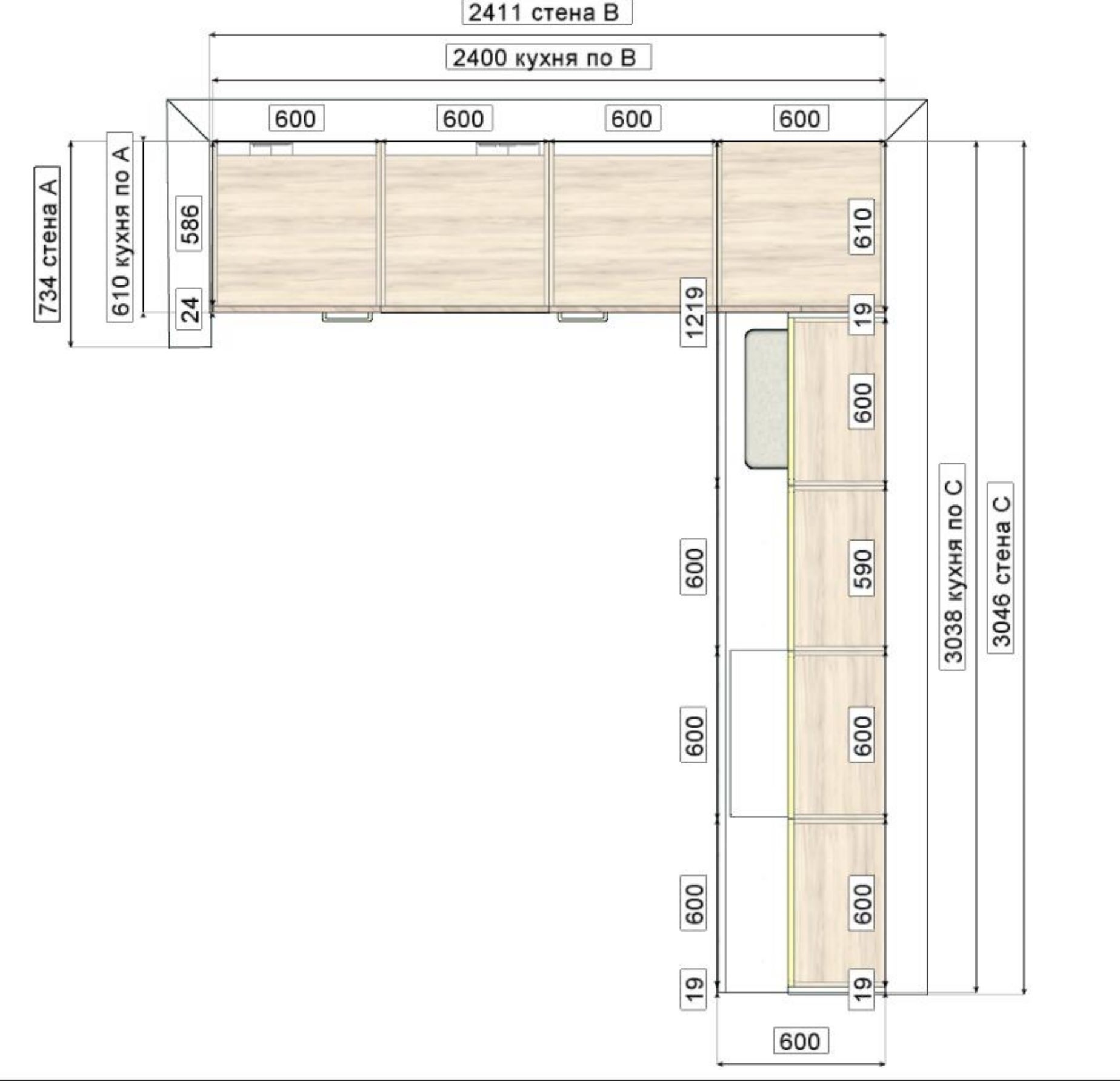 Размер Кухни слева направо В/Ш/Г: 2787/2400*3038/600 мм. (см.эскиз)