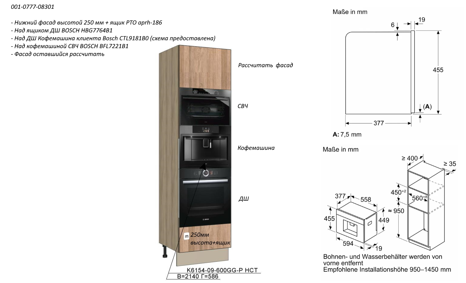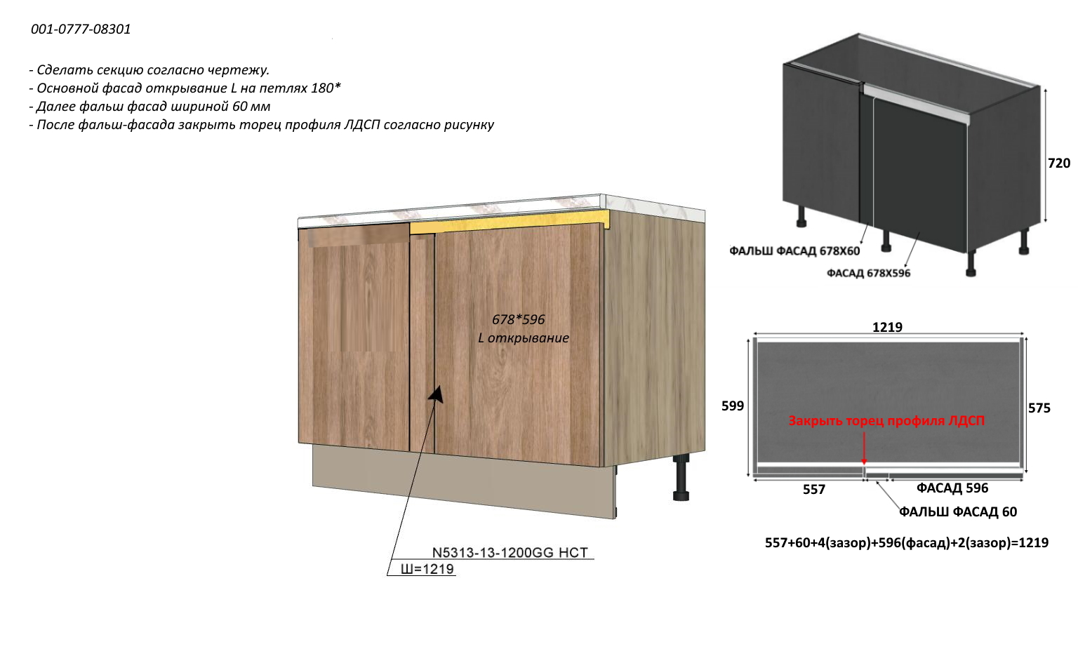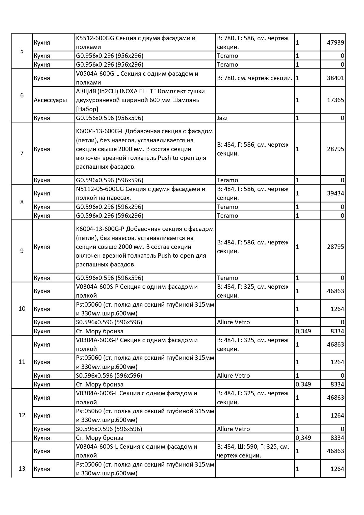 - (19 шт.) секции с фасадами, фасад под ПММ + накладные боковины…