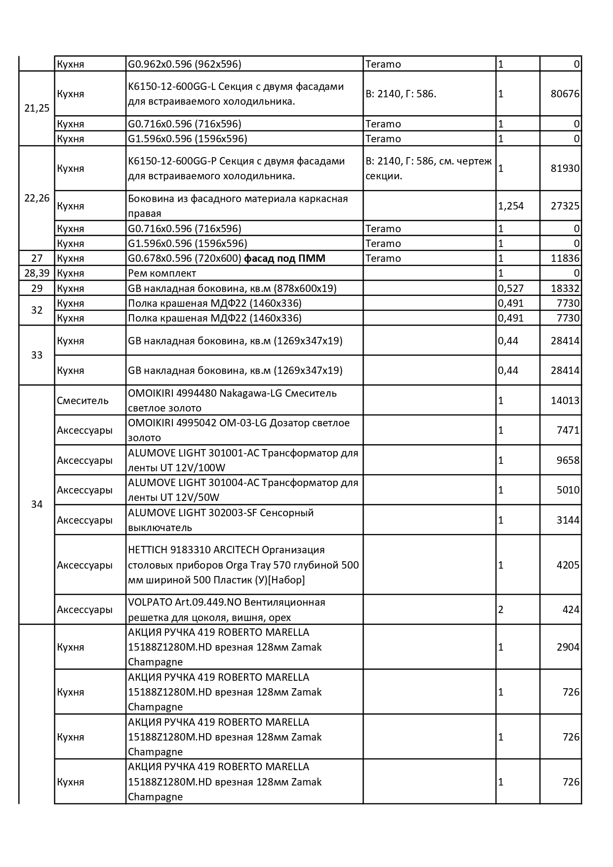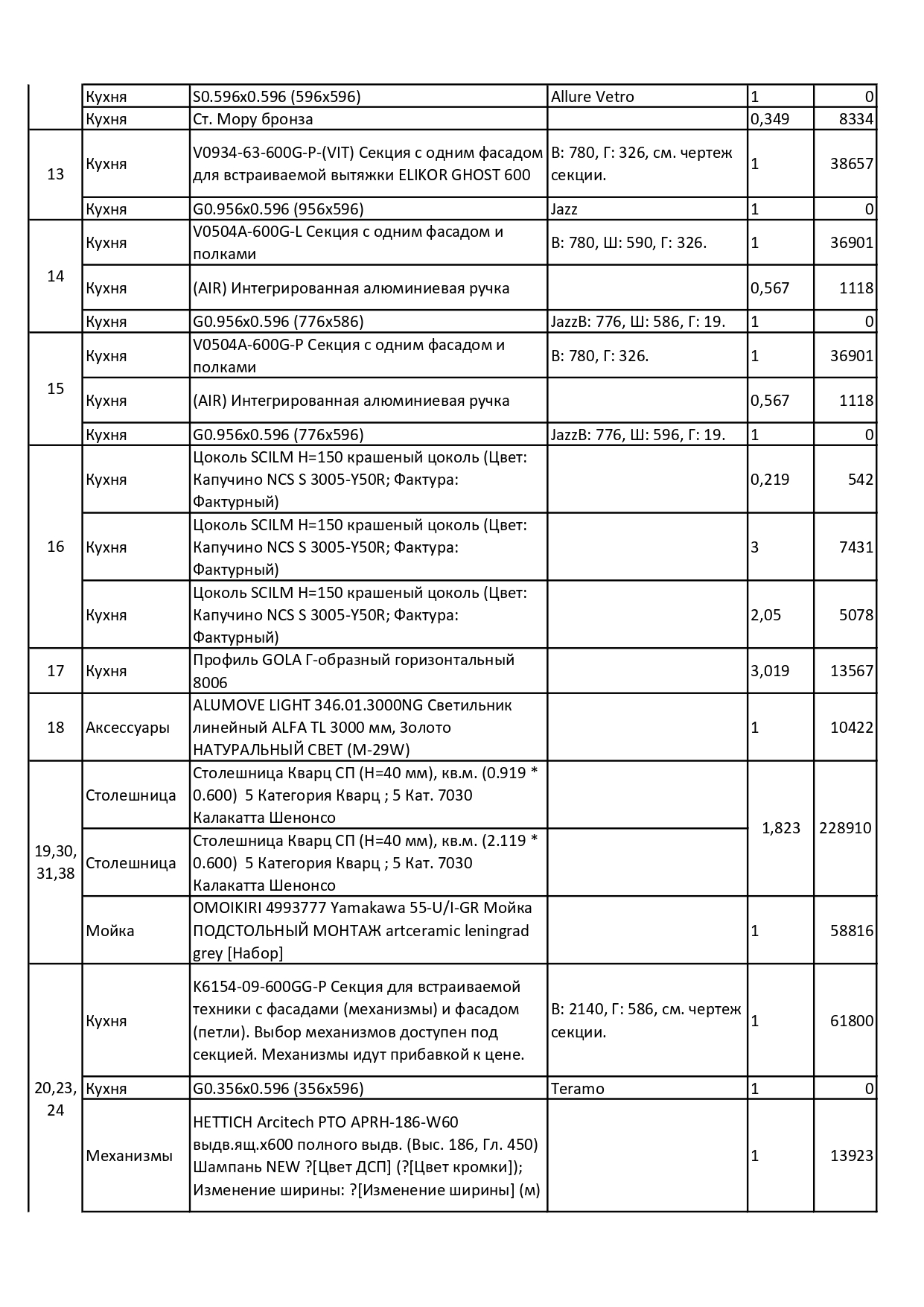 Подробный перечень комплектующих данной кухни - в спецификации/характеристиках товара.