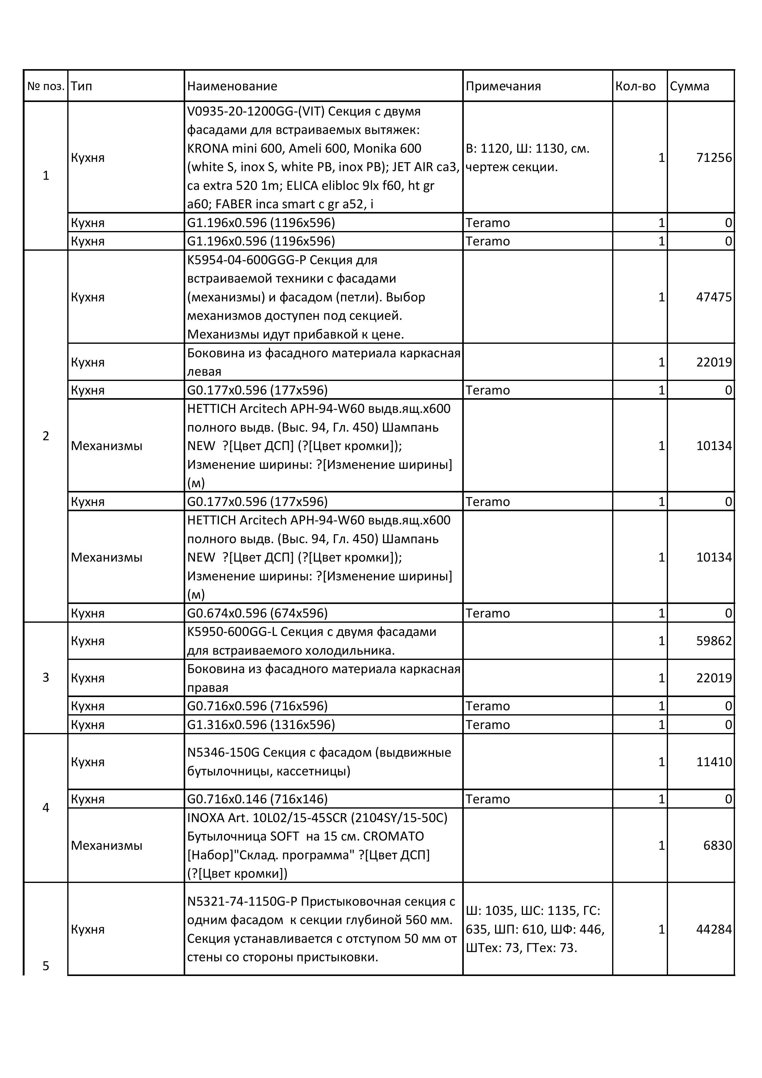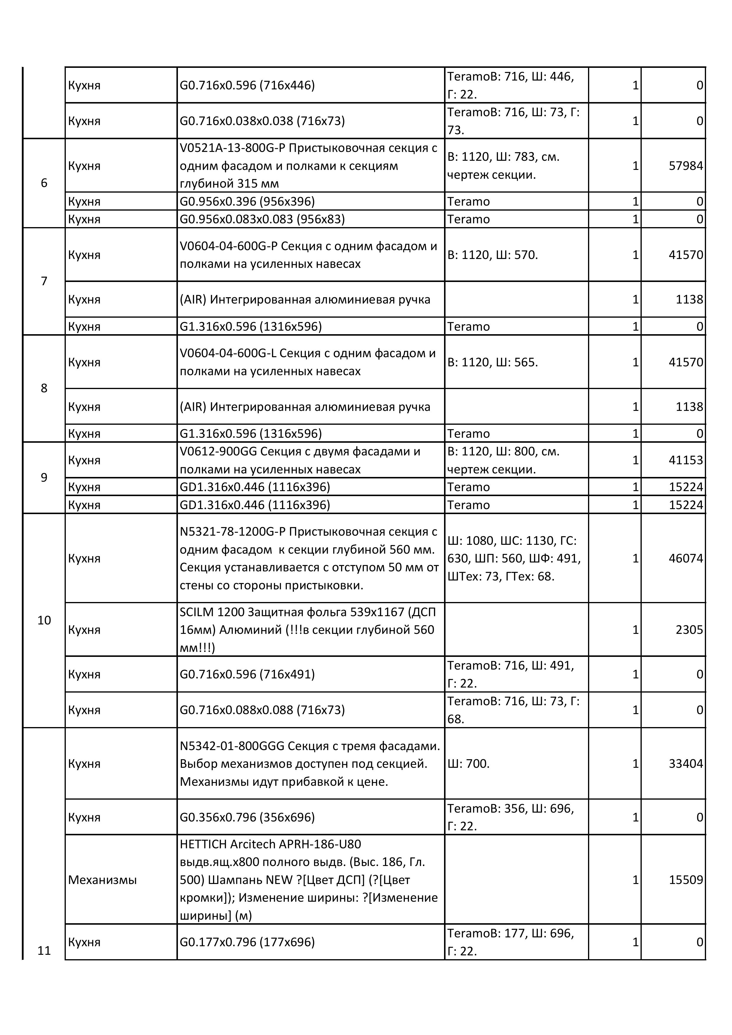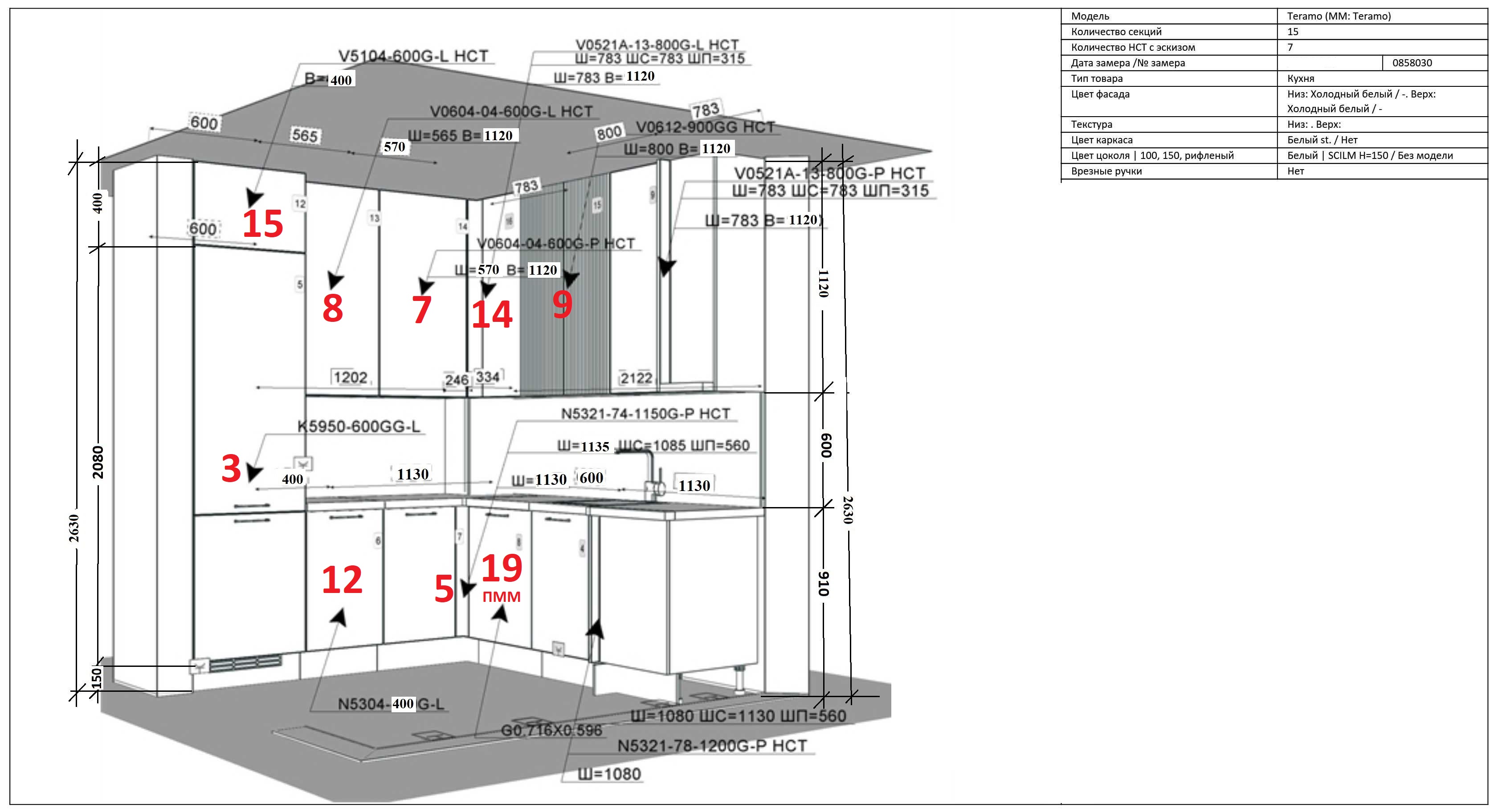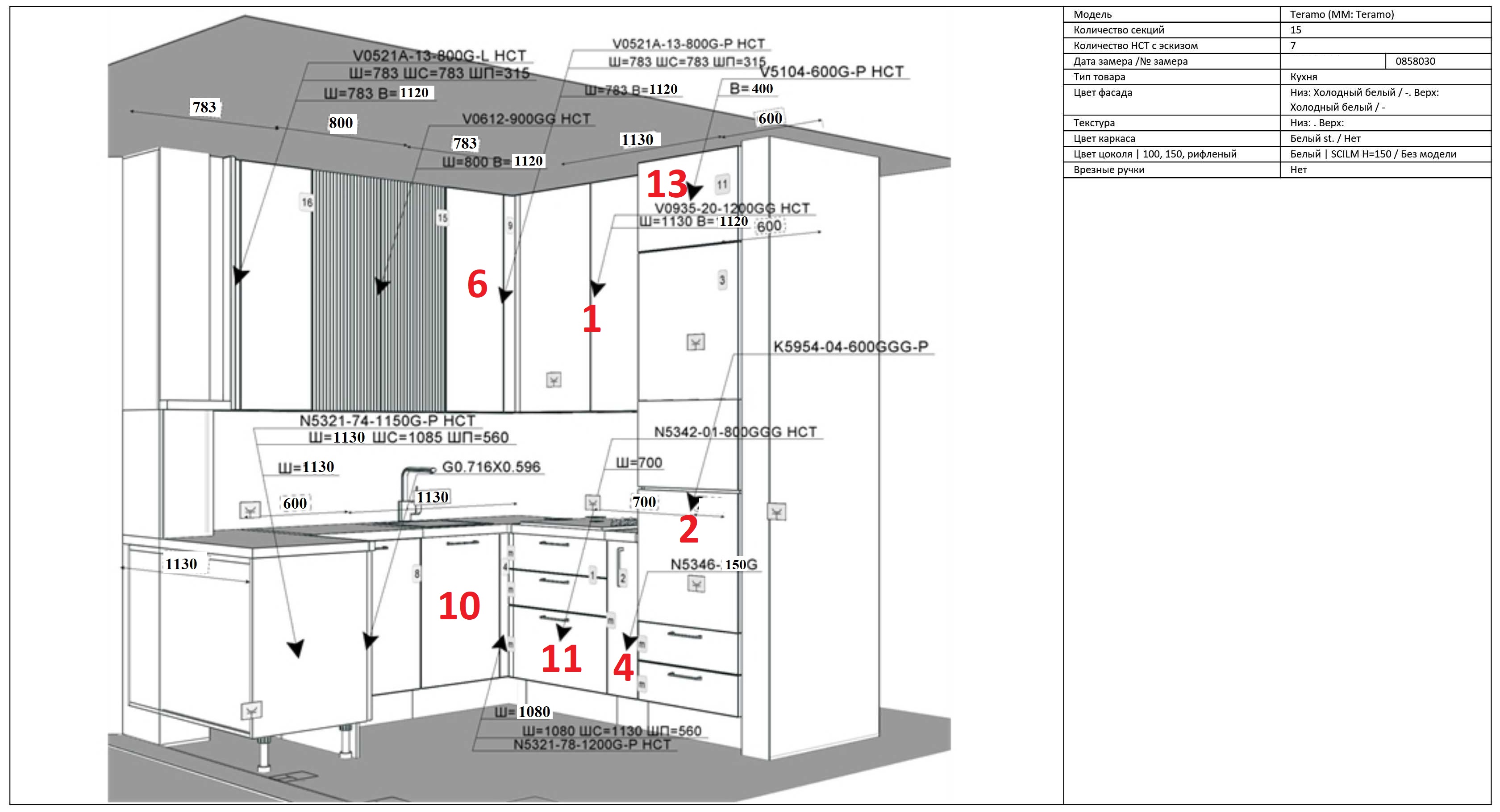 - (15 шт.) секции с фасадами + фасад под ПММ