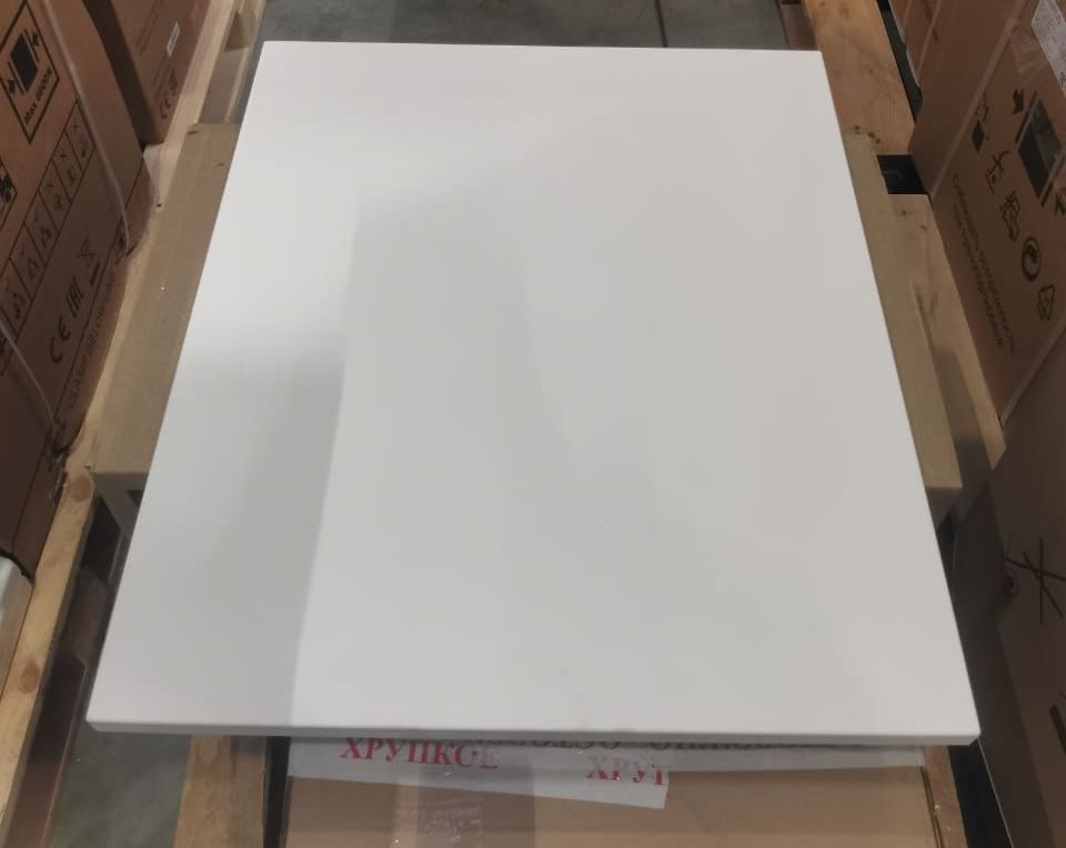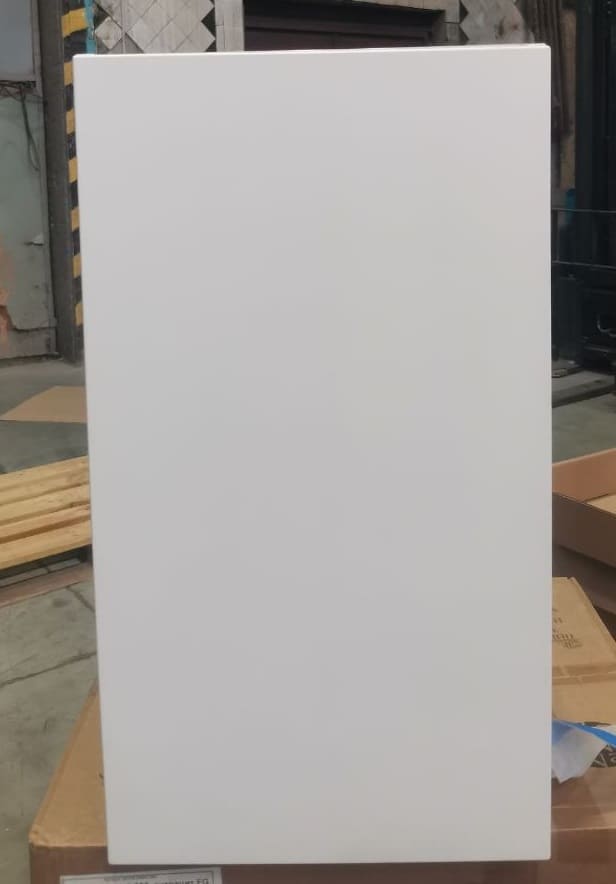МДФ 22 мм. Покрытие: лицевая сторона — термопластик, обратная — белый ламинат. Термопластик обладает рядом преимуществ: большой выбор цветов и текстур, долговечность и прочность к механическим повреждениям, экологичность. Фасады изготавливаются путем облицовывания пластиком основы из МДФ методом вакуумного прессования.