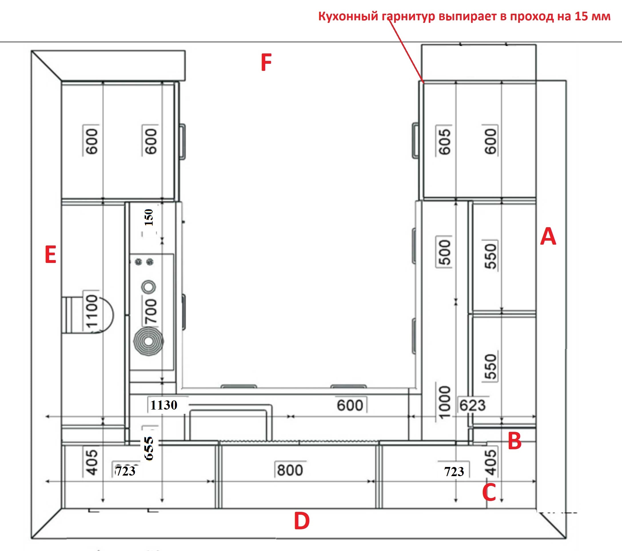 Размер Кухни слева направо В/Ш/Г: 2590/2100*2446*2100/600 мм. (см.эскиз)