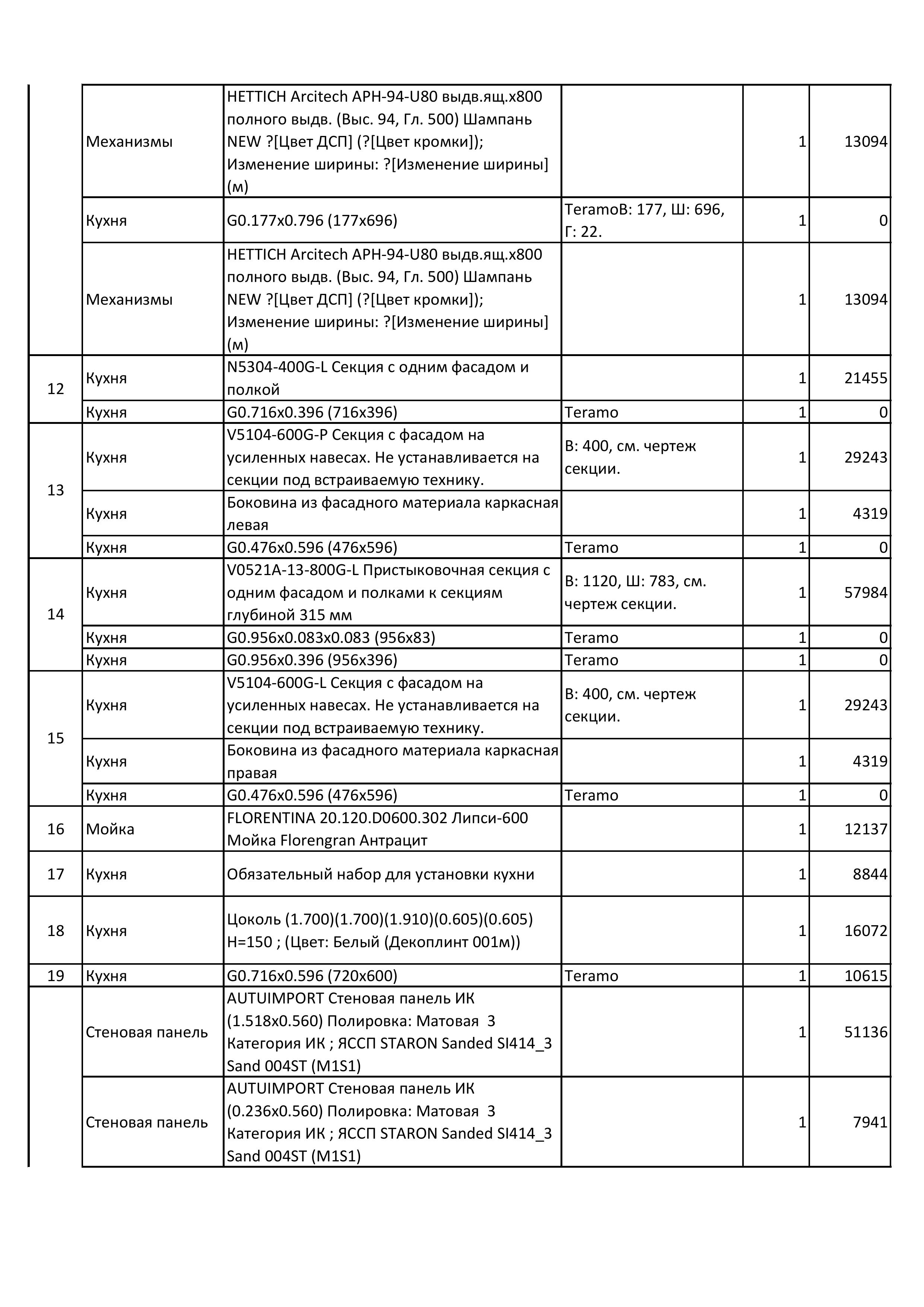 Подробный перечень комплектующих данной кухни - в спецификации/характеристиках товара.