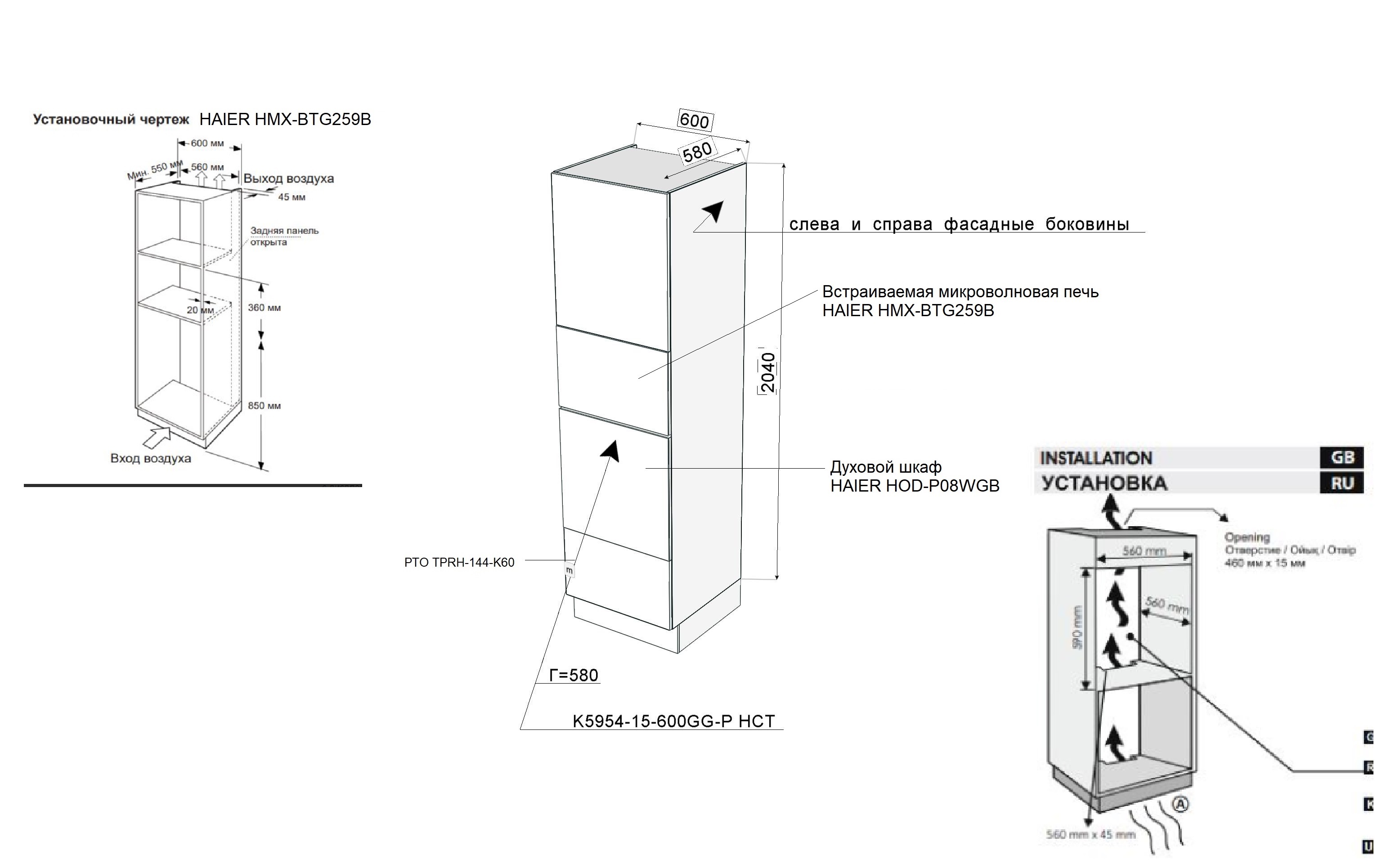 - (9 шт.) секции с фасадами (петли в комплекте) + фасад под ПМММ, накладные боковины