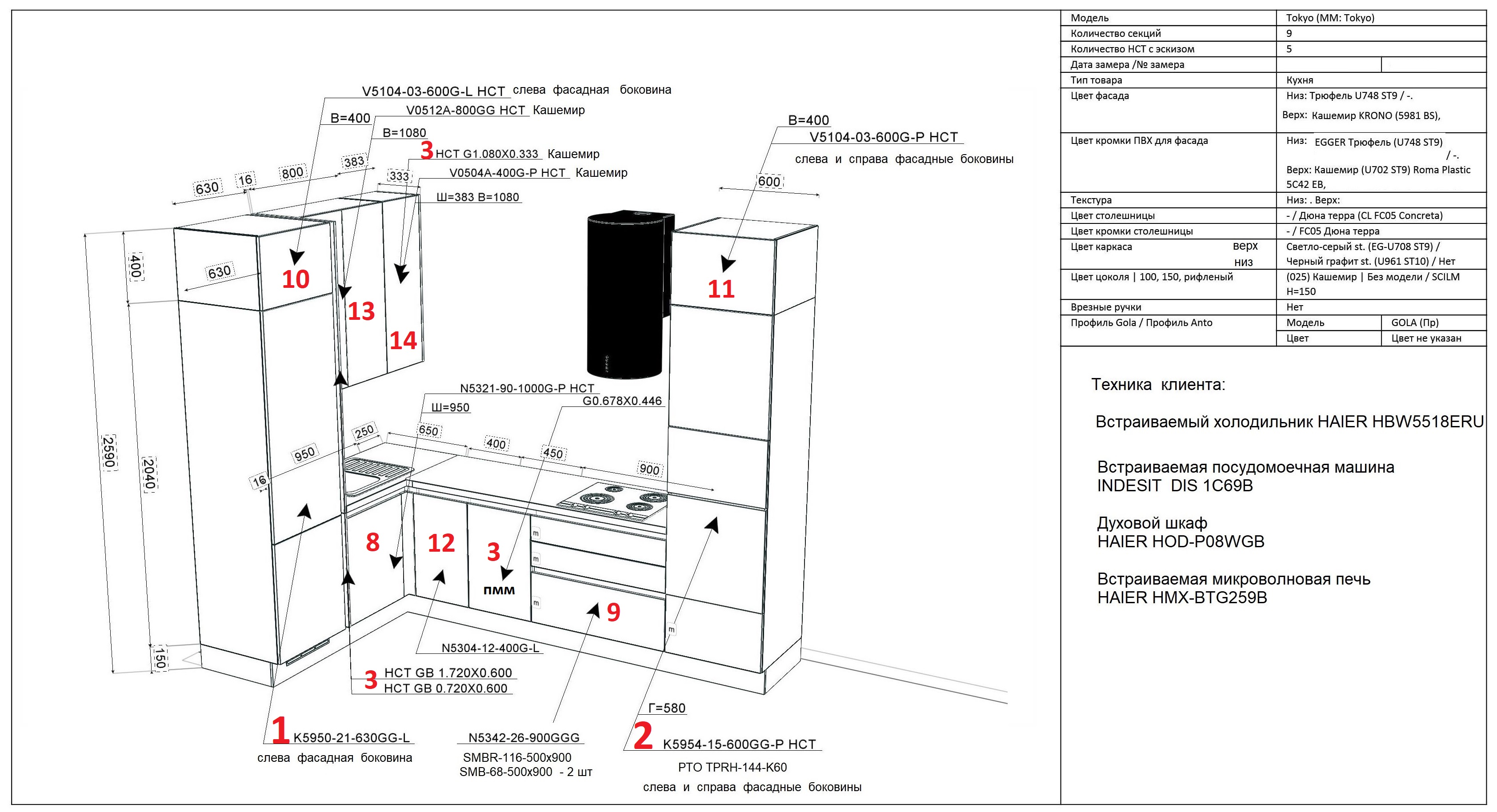 Размер Кухни слева направо В/Ш/Г: 2590/1845*3000/600 мм.